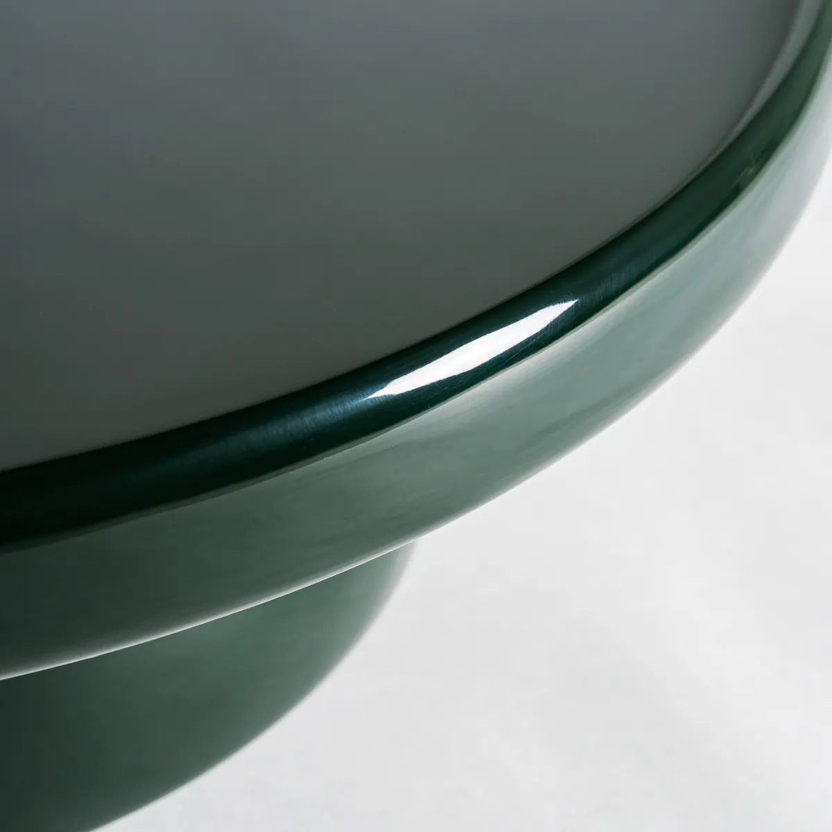 Mesa de centro gory de estilo contemporáneo fabricado en madera dm en color verde con acabado brillo combinado con fibra de vidrio en color verde. Producto desmontable.