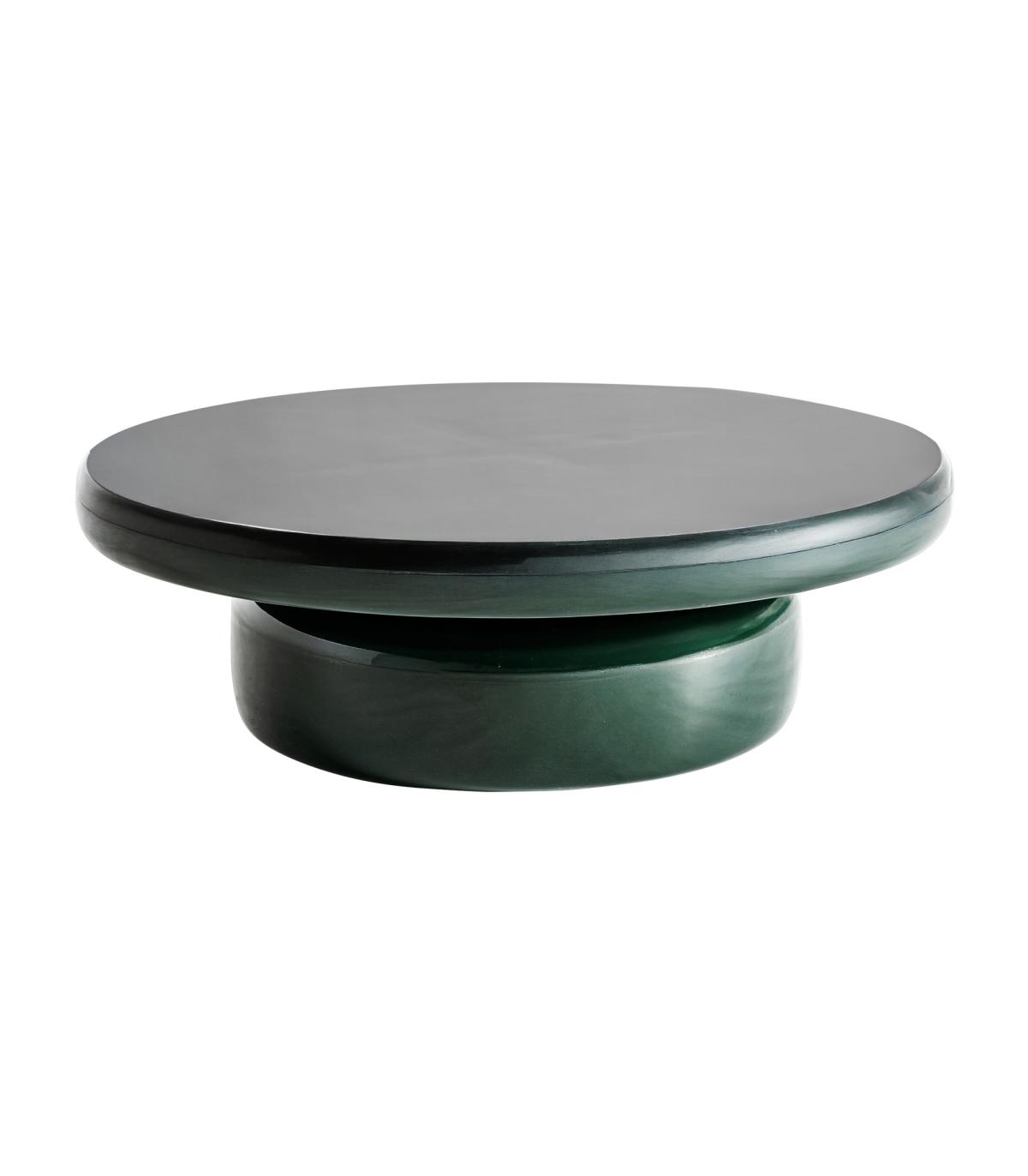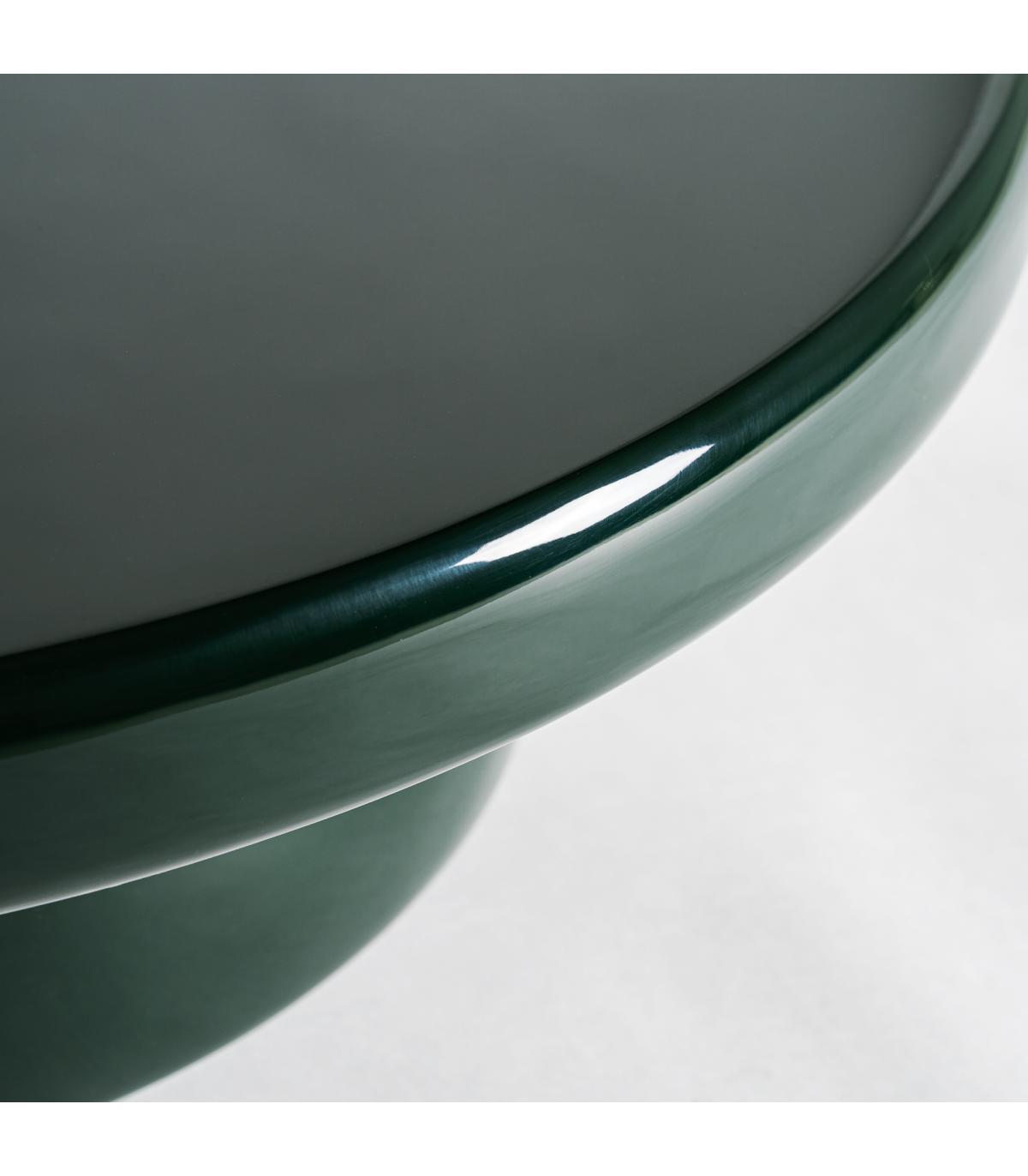 Mesa de centro gory de estilo contemporáneo fabricado en madera dm en color verde con acabado brillo combinado con fibra de vidrio en color verde. Producto desmontable.