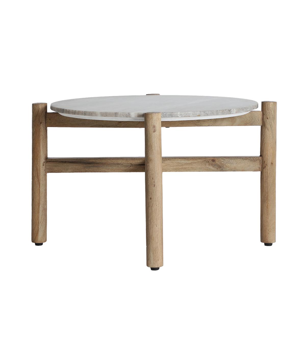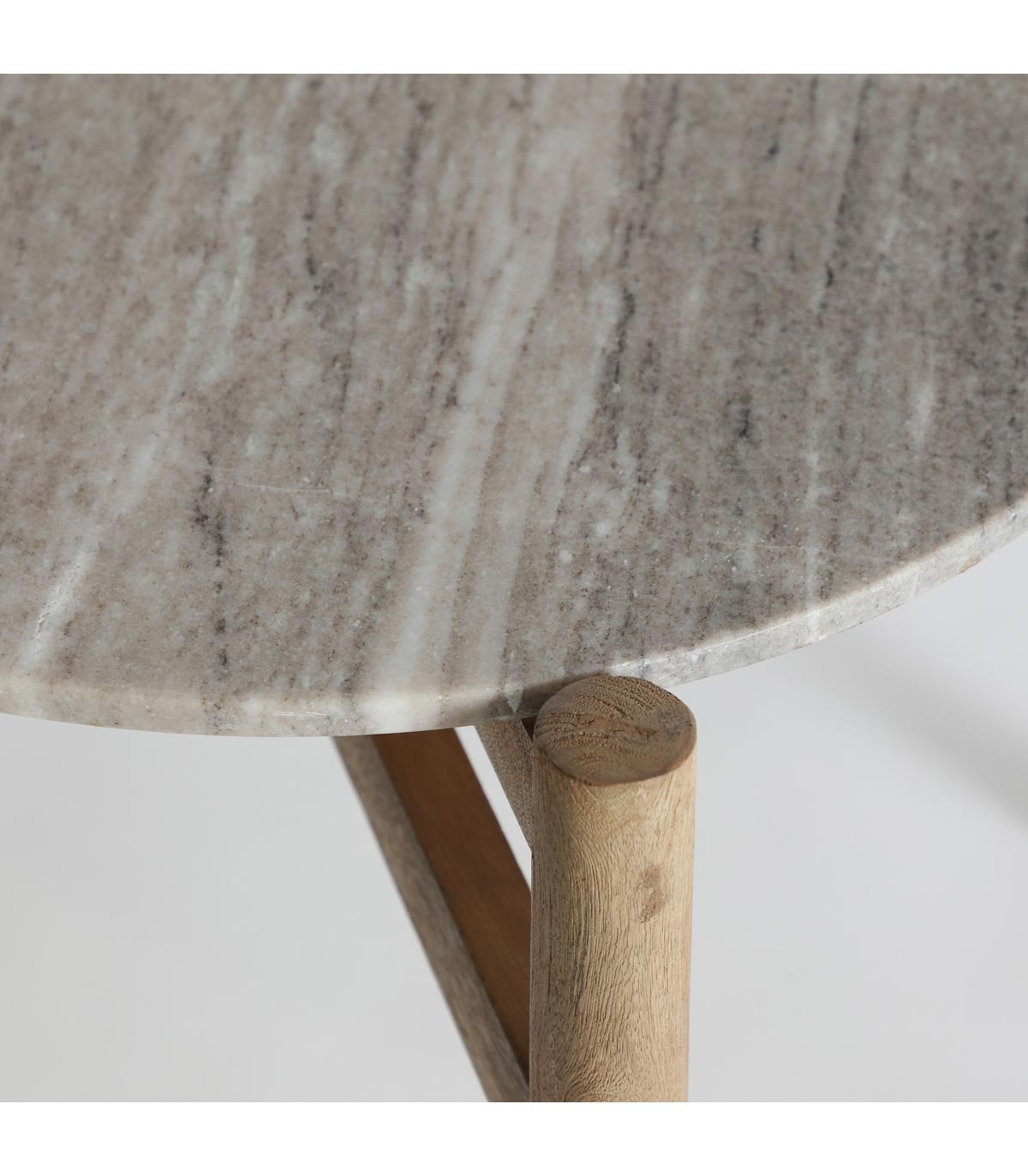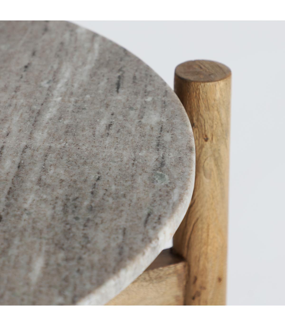 Mesa de centro Lacaune de estilo nórdico, fabricado en mármol en color gris, combinado con madera de mango en color marrón. Producto desmontable.