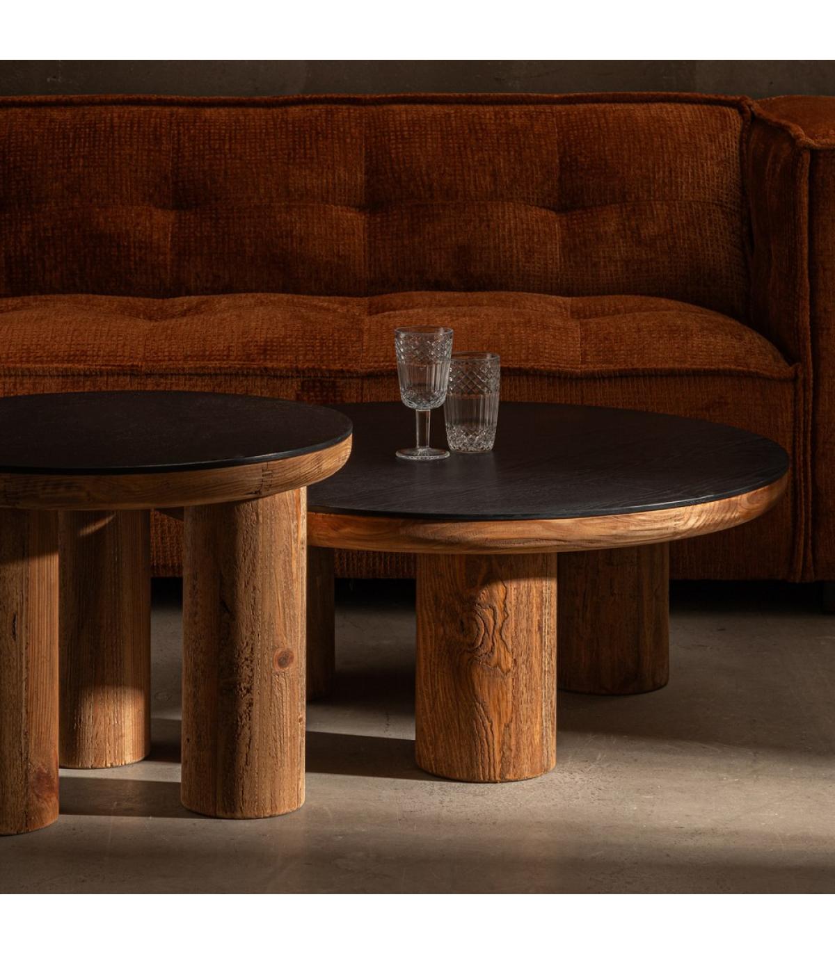 MESA CENTRO NATURAL-NEGRO MADERA DE PINO 90 X 90 X 35 CM Material: madera de pino reciclada, chapa de roble. Grosor tablero: 5cm. Altura patas: 30cm.