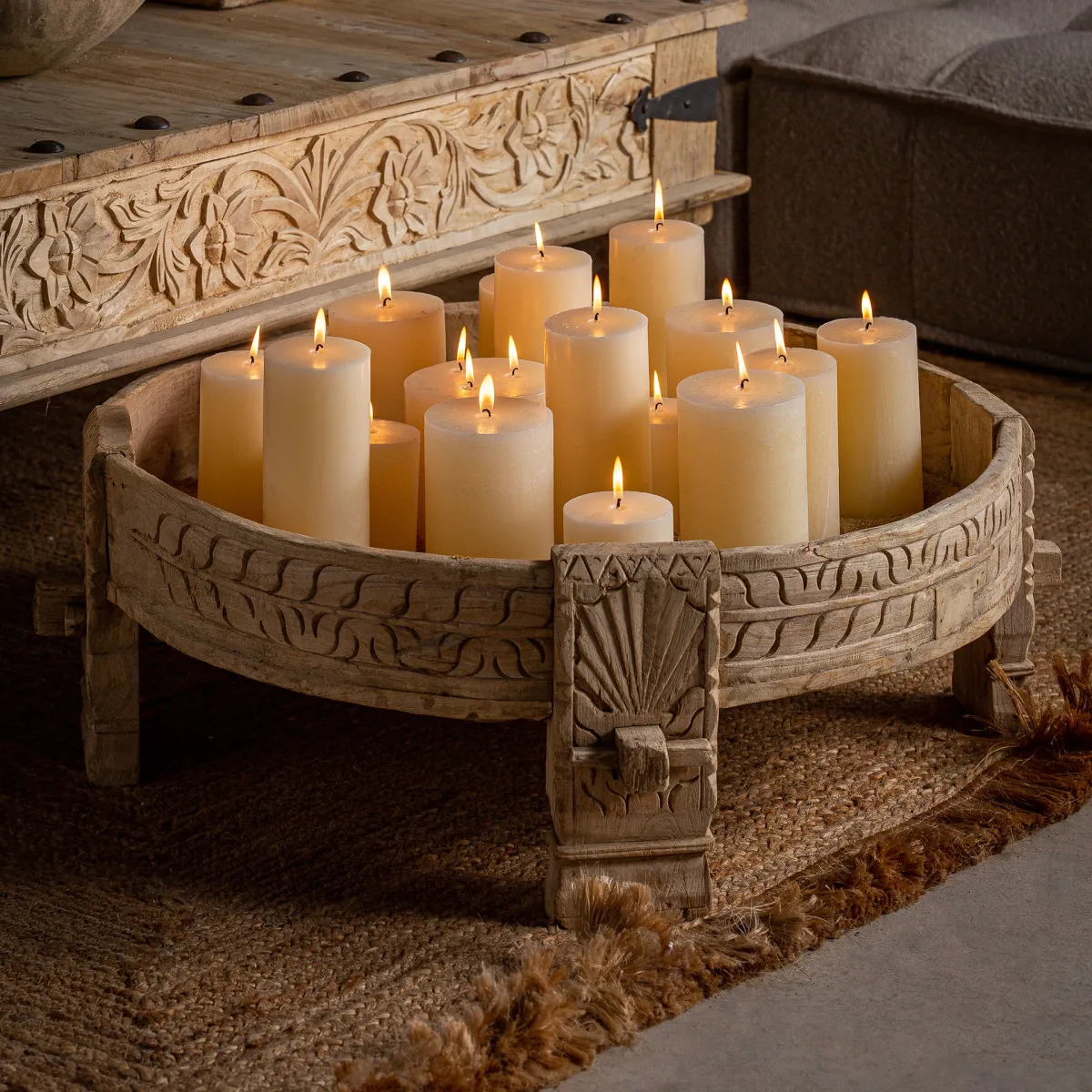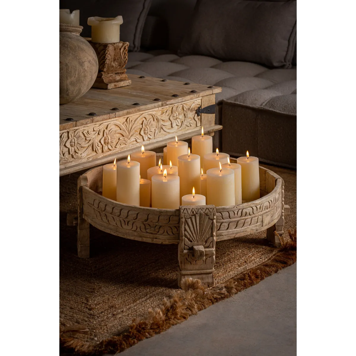 Mesa de centro Chiayi de estilo étnico fabricado en madera de teka en color marrón con acabado envejecido.