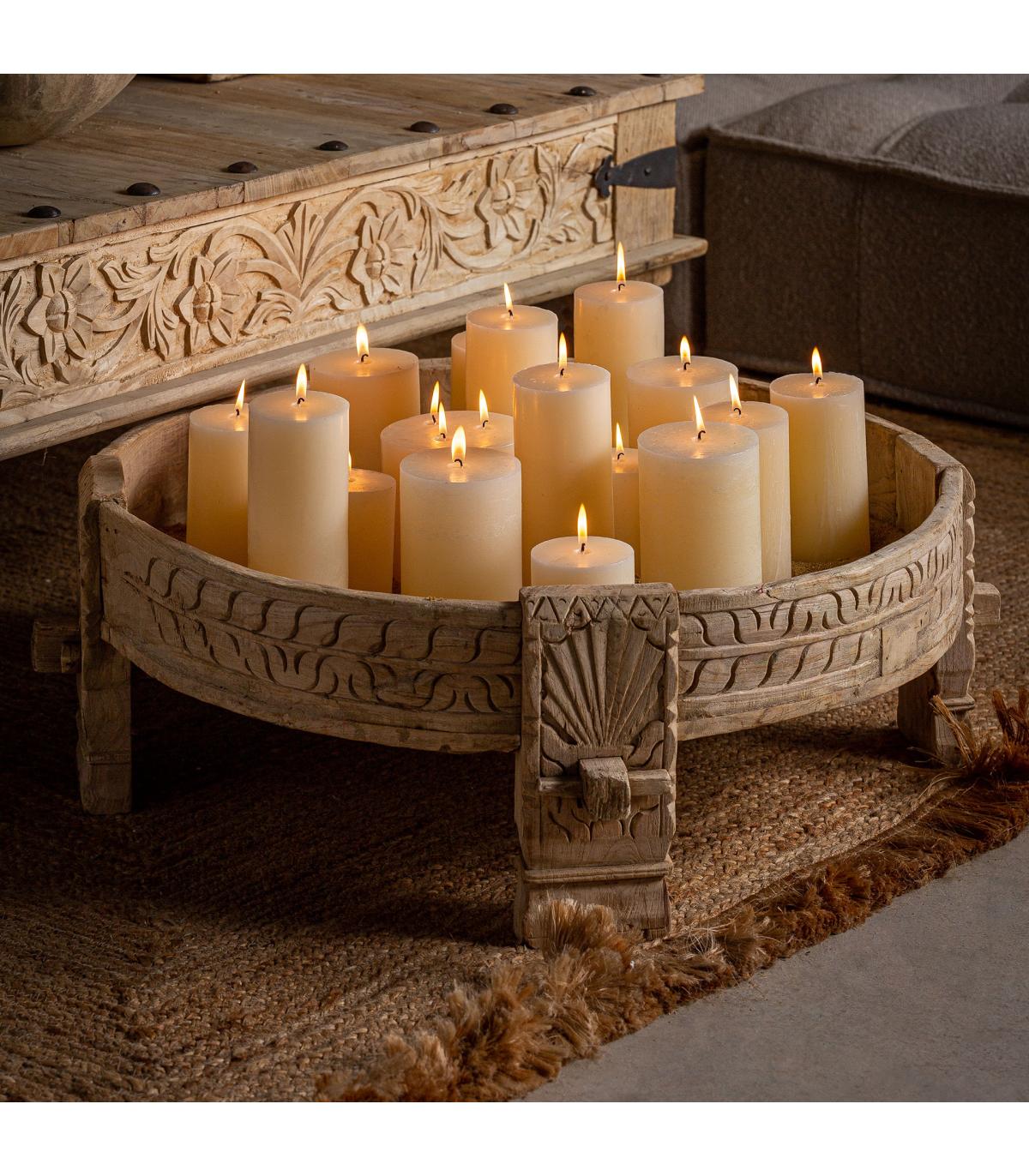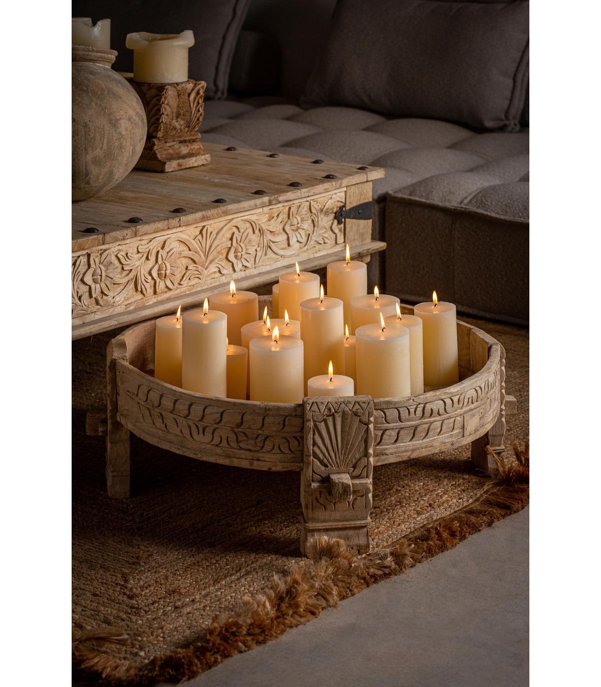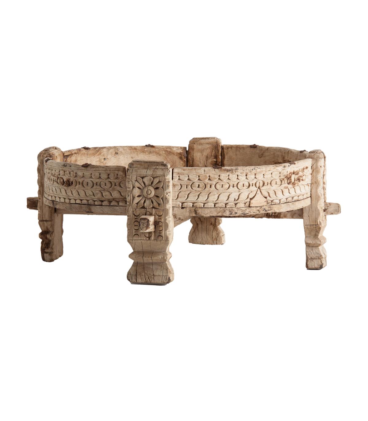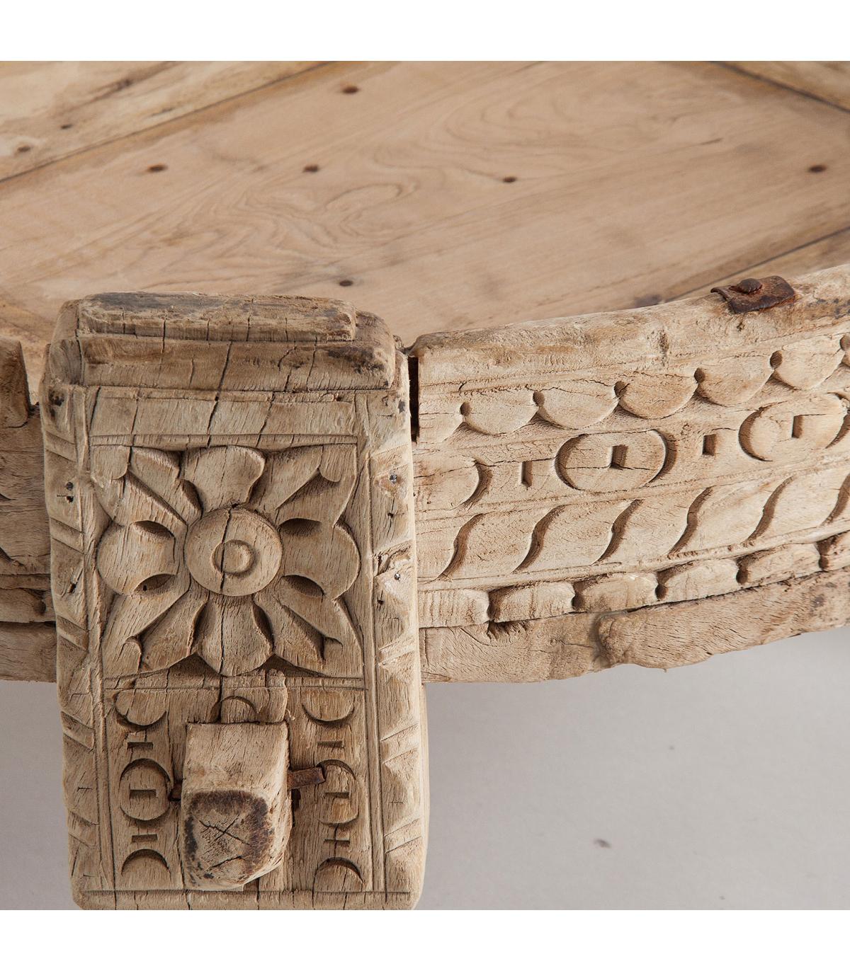 Mesa de centro Chiayi de estilo étnico fabricado en madera de teka en color marrón con acabado envejecido.
