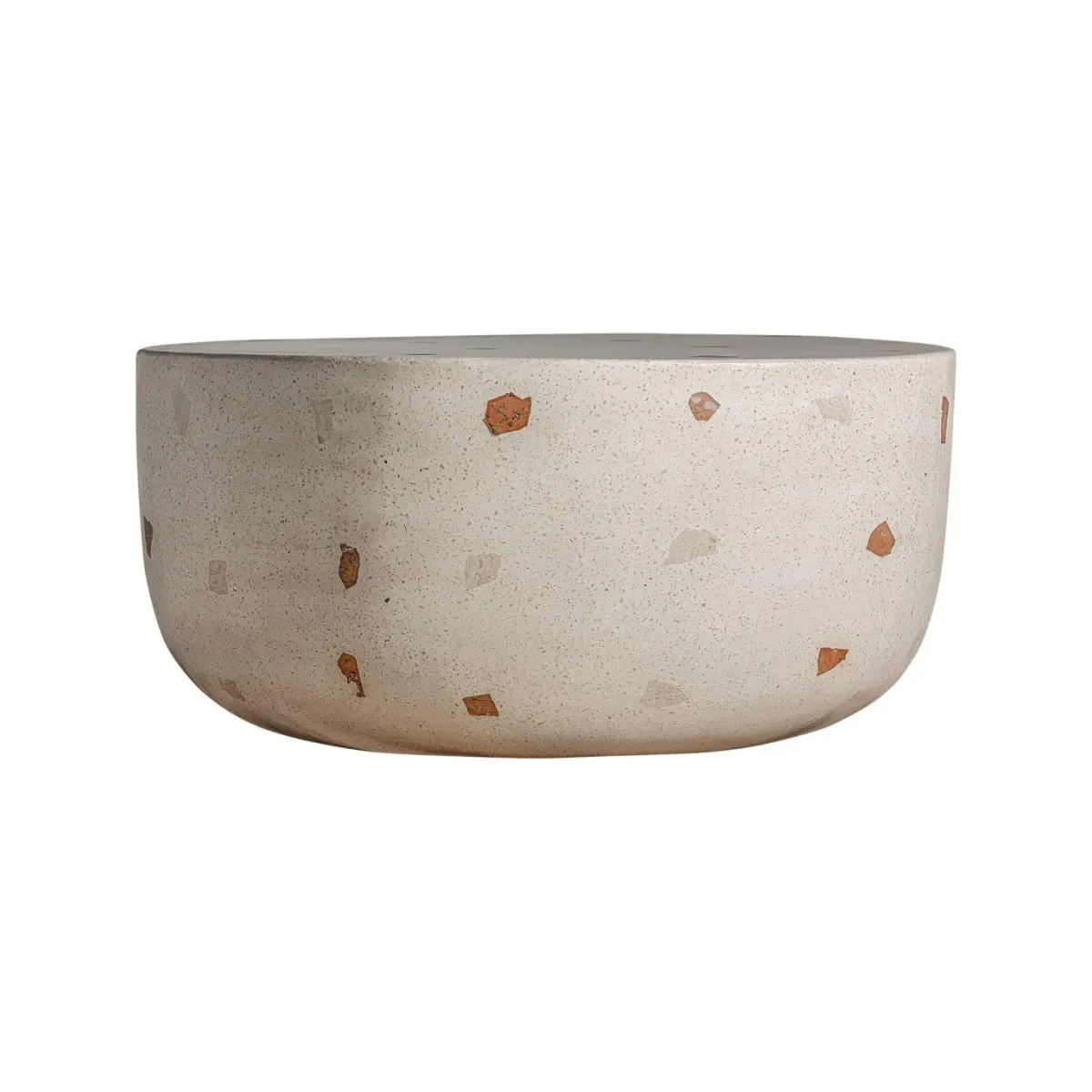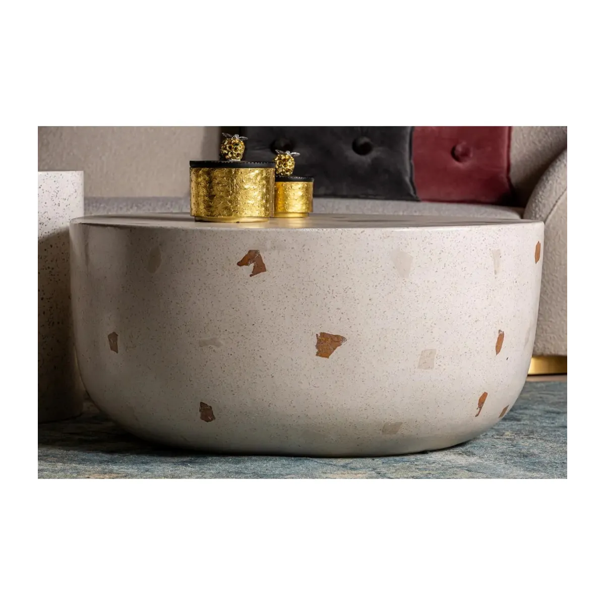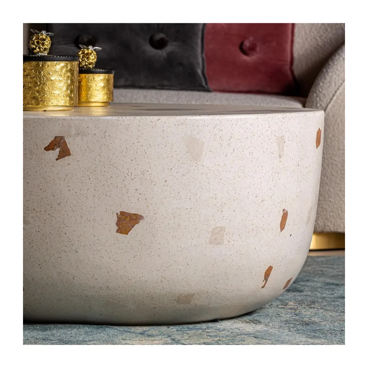 Mesa de centro massa, en color blanco, de estilo contemporáneo. Fabricado en terrazo.