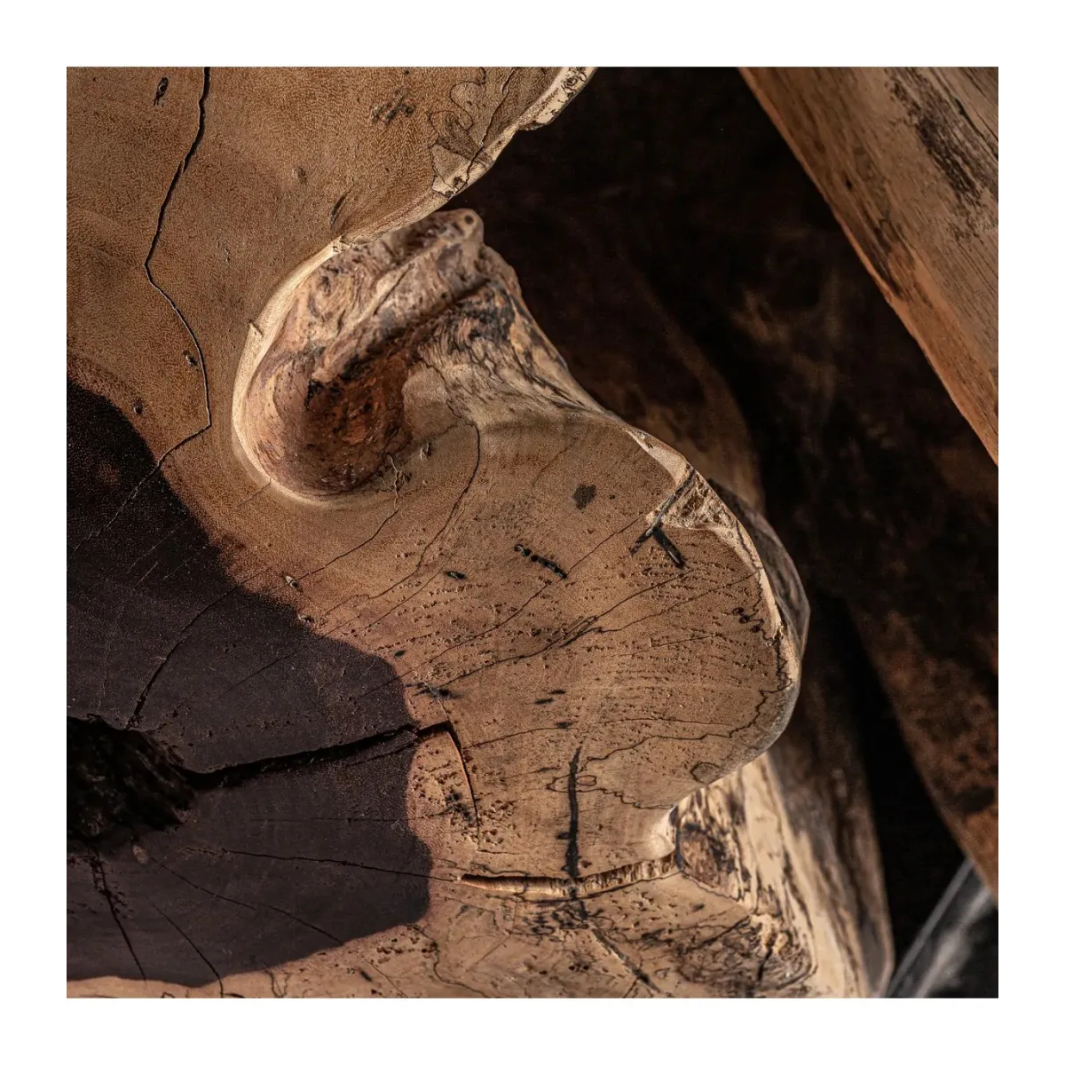 Mesa de centro dharm, en color natural envejecido, de estilo étnico. Fabricado en madera de tamarindo.