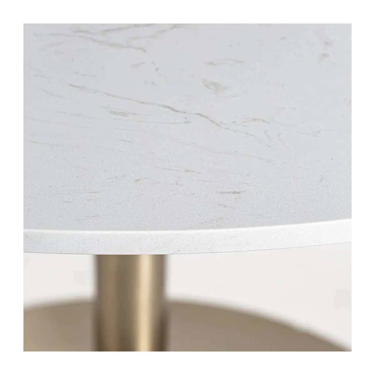 Mesa comedor kelheim de estilo art deco. Fabricado en porcelánico en color gris oro combinado con acero en color oro. Producto desmontable.