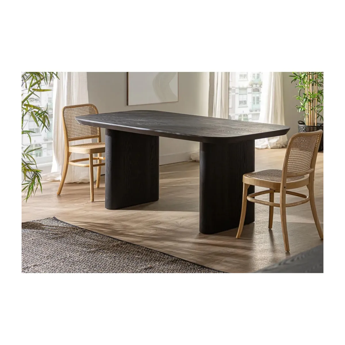 Mesa comedor rectangular rognes de estilo contemporáneo, fabricado en madera de abeto en color negro. Producto desmontable.