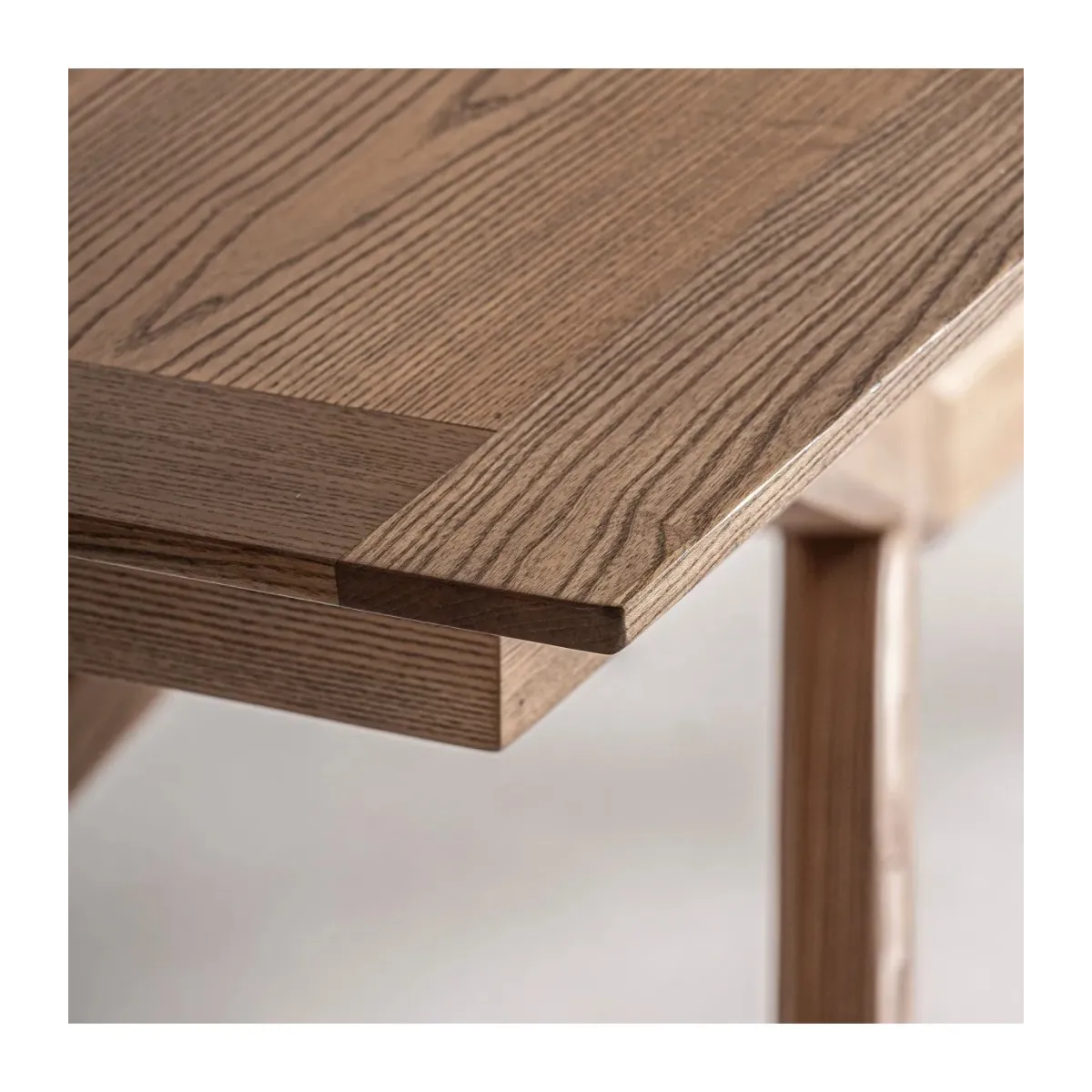 Mesa extensible vrebos de estilo contemporáneo fabricado en madera de fresno en color marrón claro combinado con chapa de madera. Producto extensible.