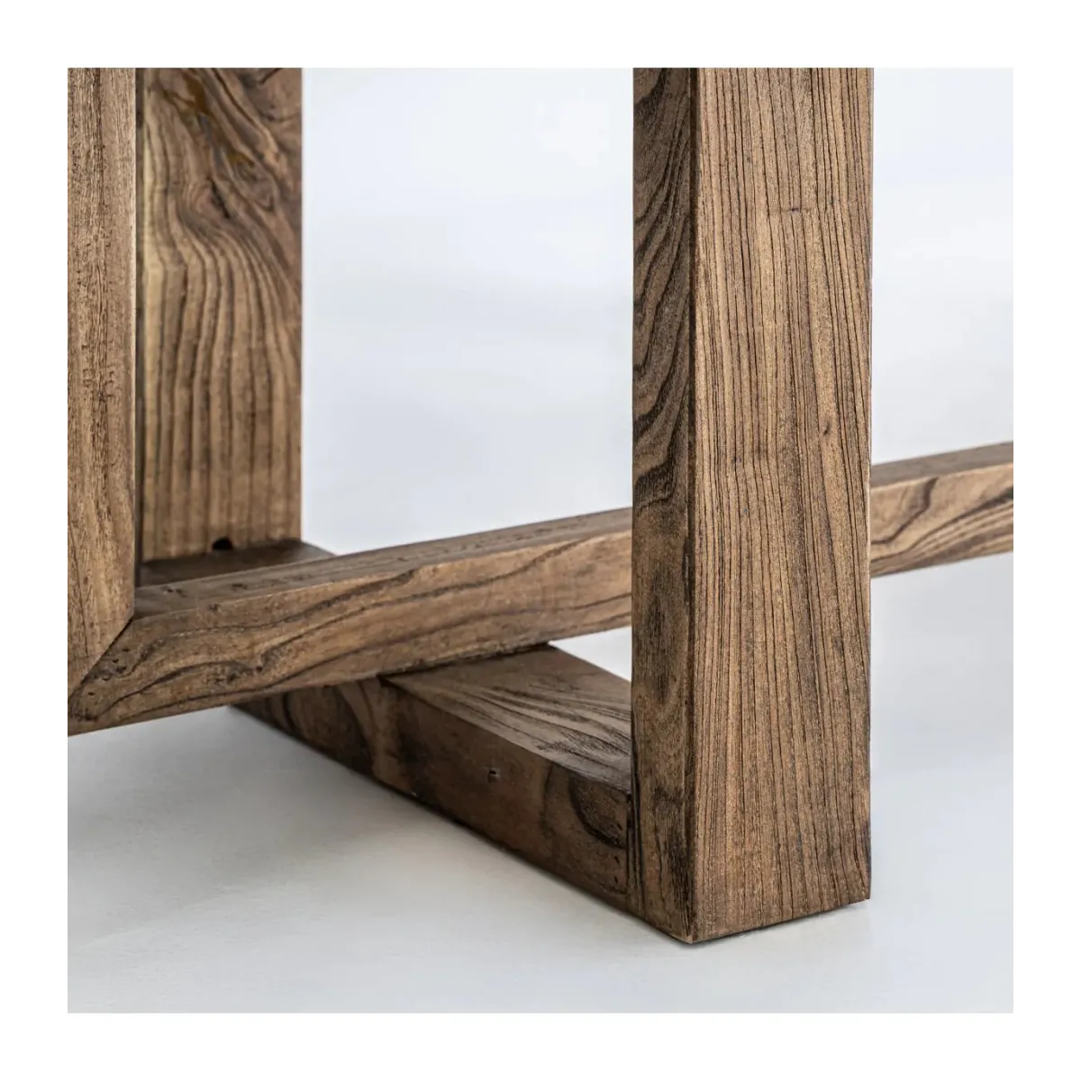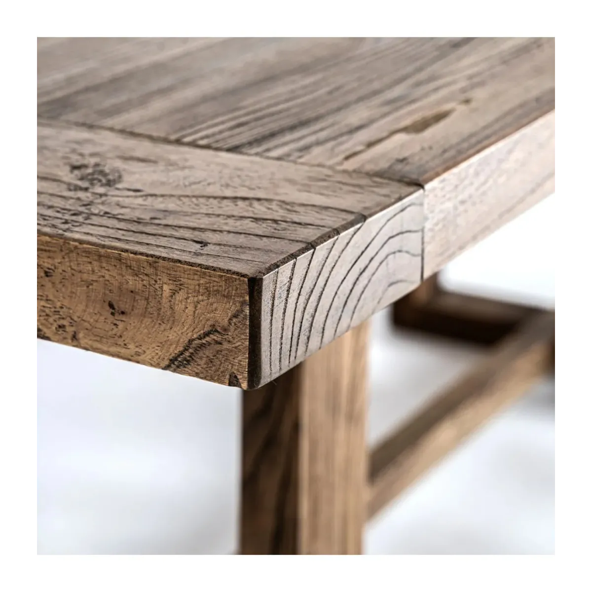 Mesa comedor fabricado en madera de olmo en color marrón.