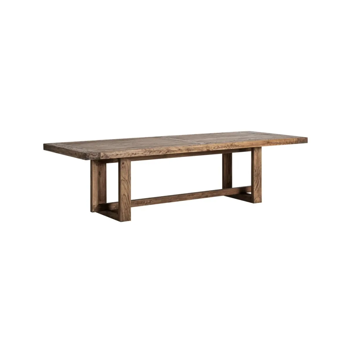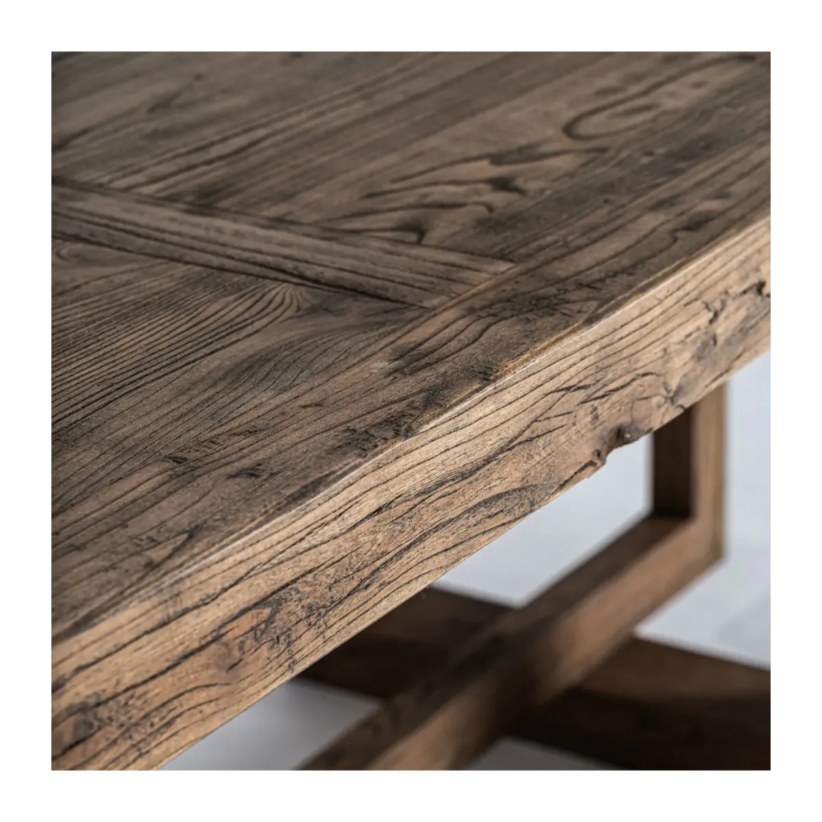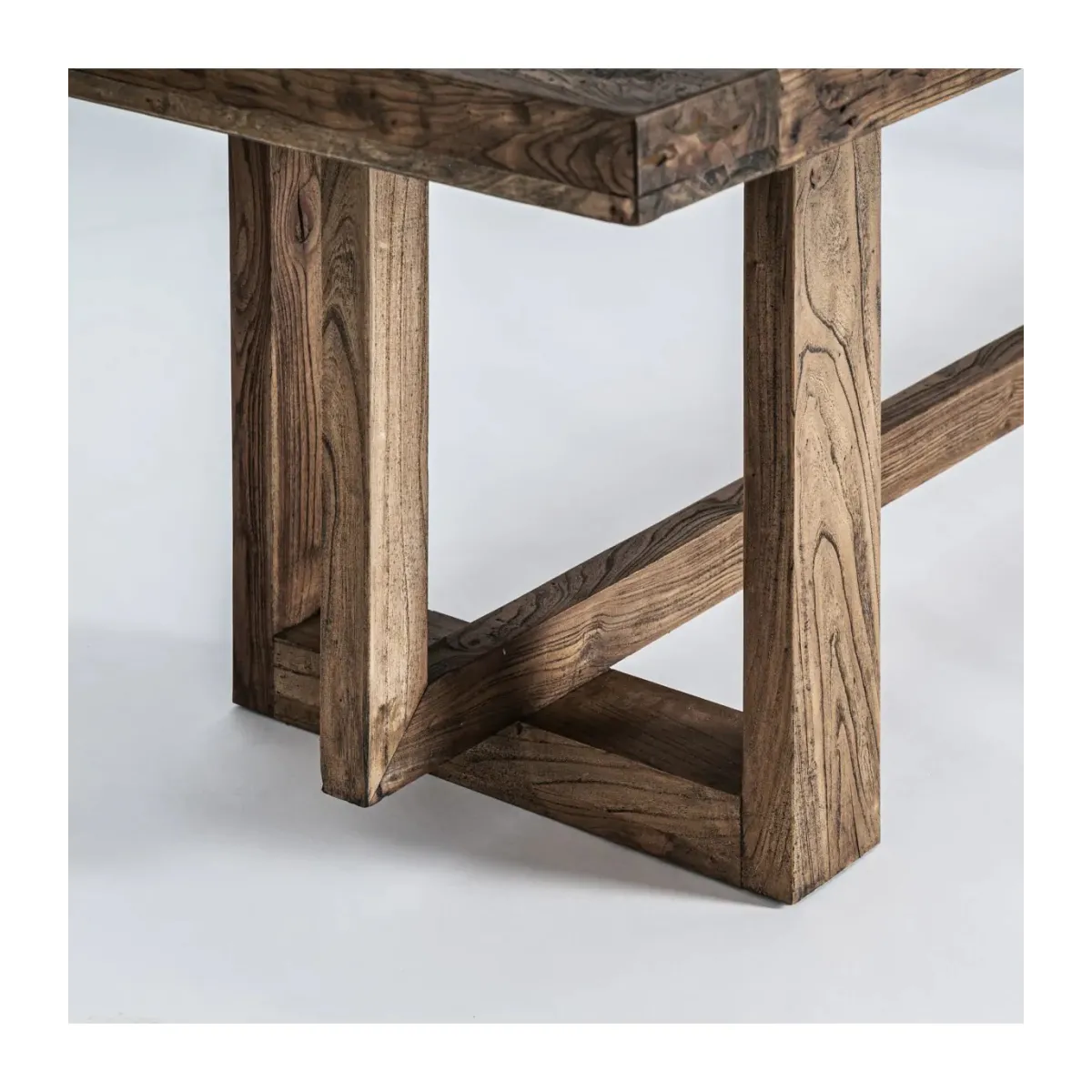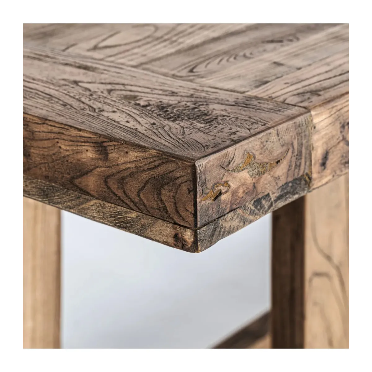 Mesa comedor fabricado en madera de olmo en color marrón.