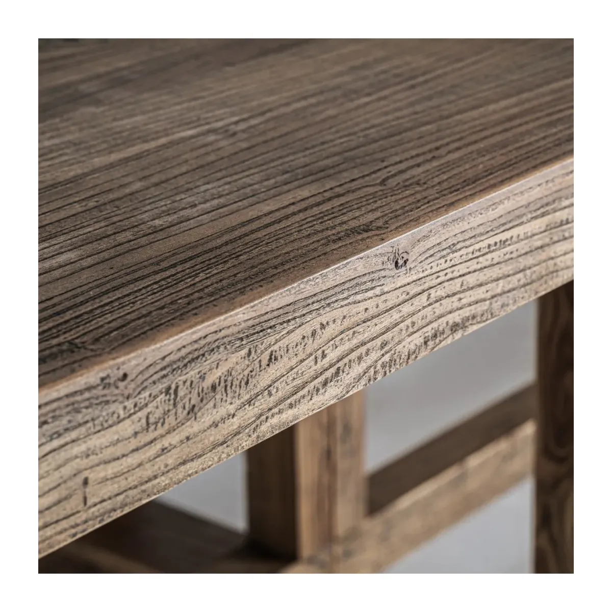 Mesa comedor fabricado en madera de olmo en color marrón.
