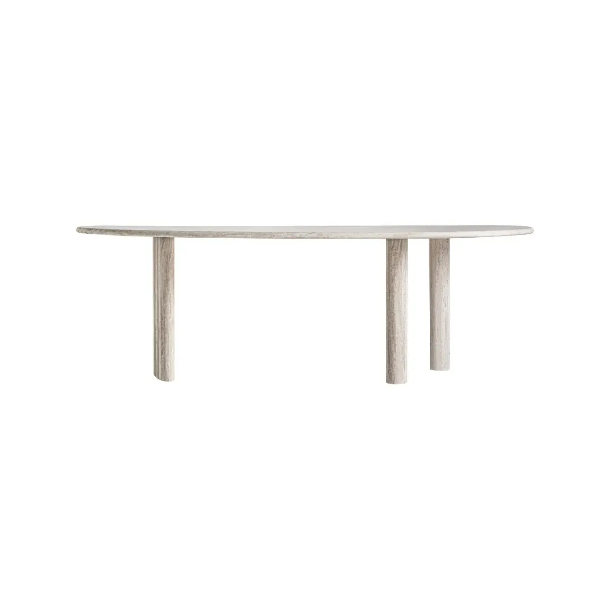 Mesa comedor Thiennes de estilo art deco fabricado en travertino en color blanco roto. Producto desmontable.