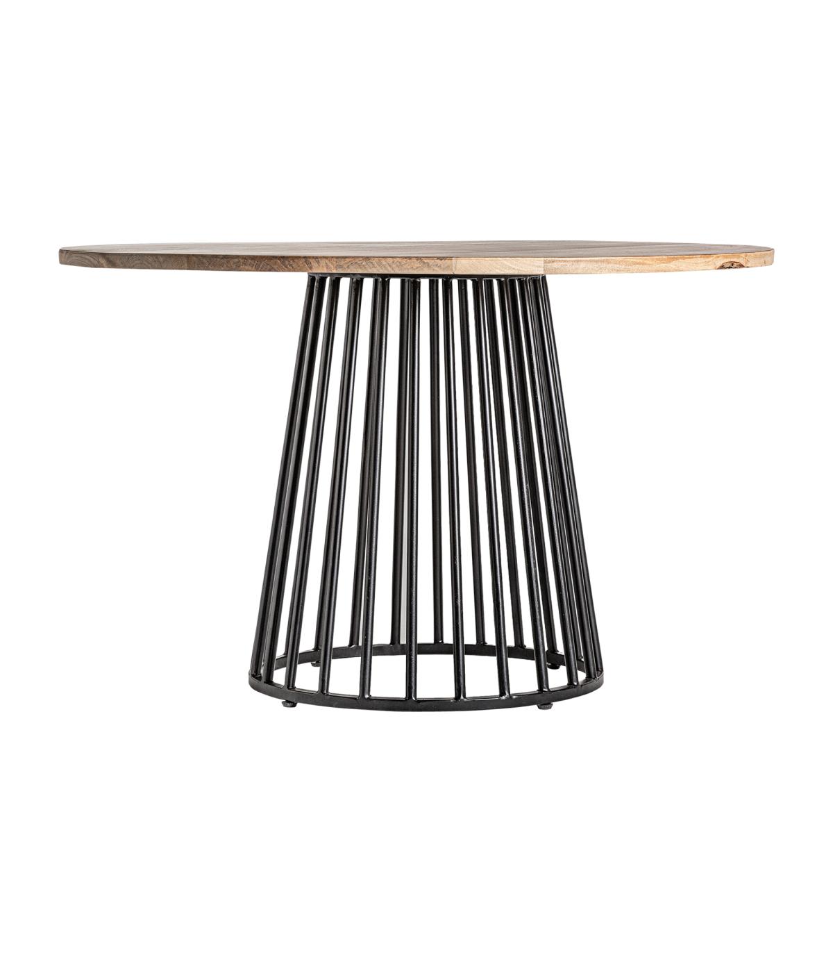 Mesa comedor weyer de estilo colonial fabricado en madera de mango en color negro combinado con hierro en color natural. Producto desmontable.