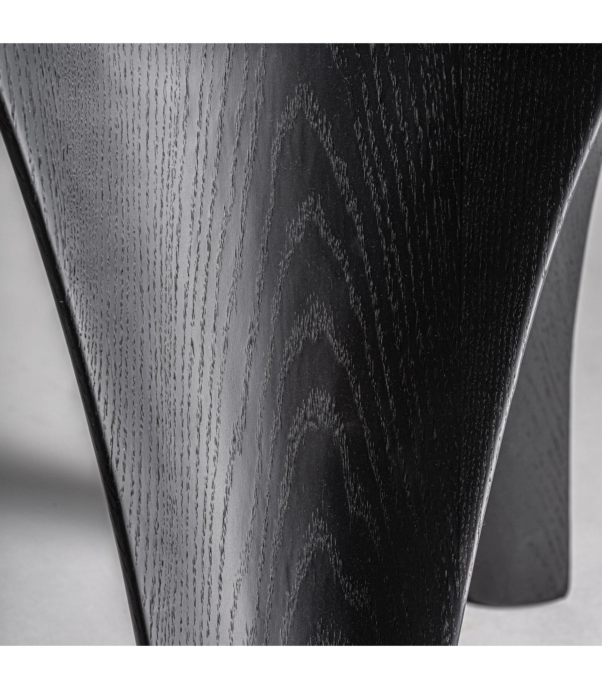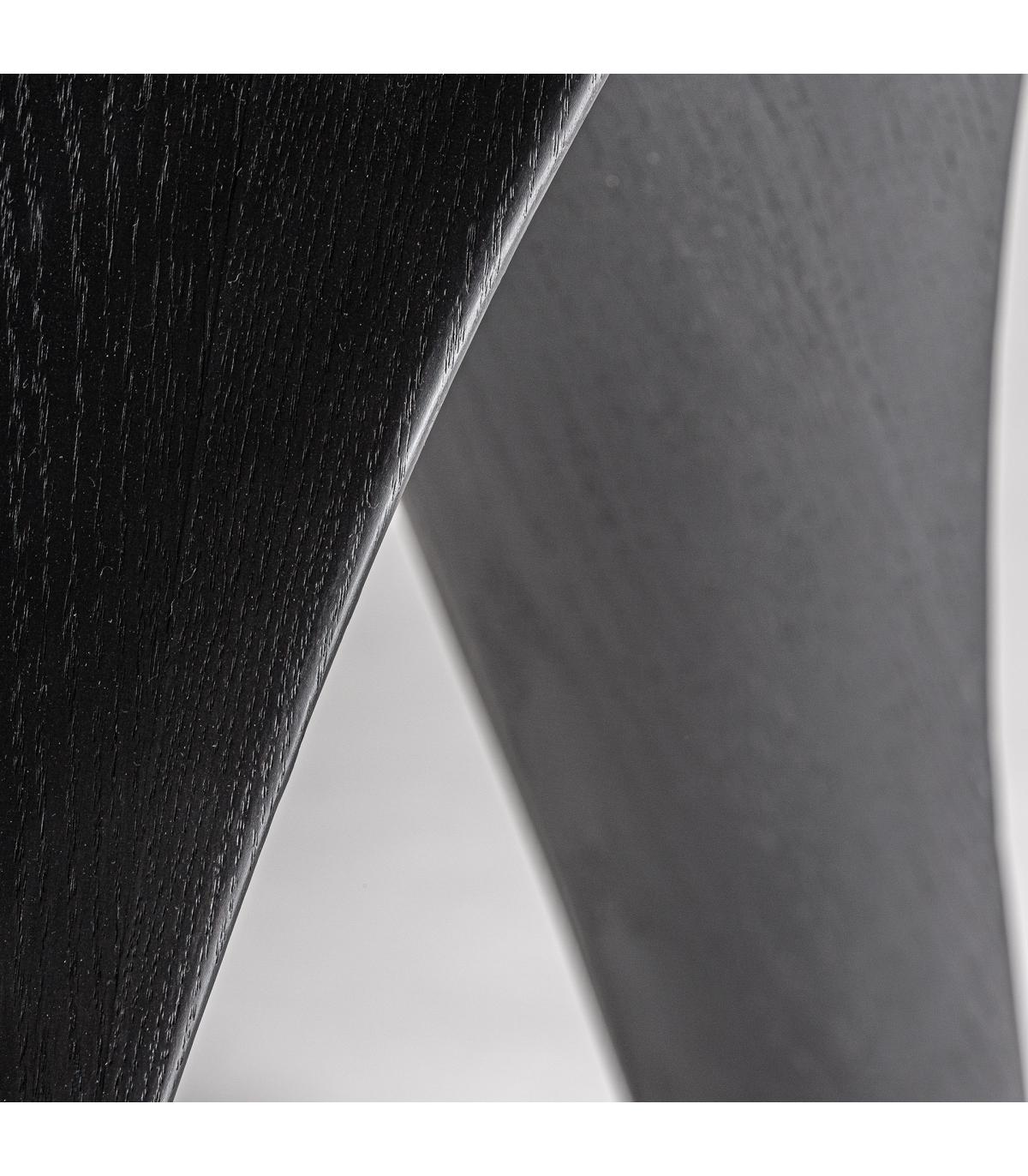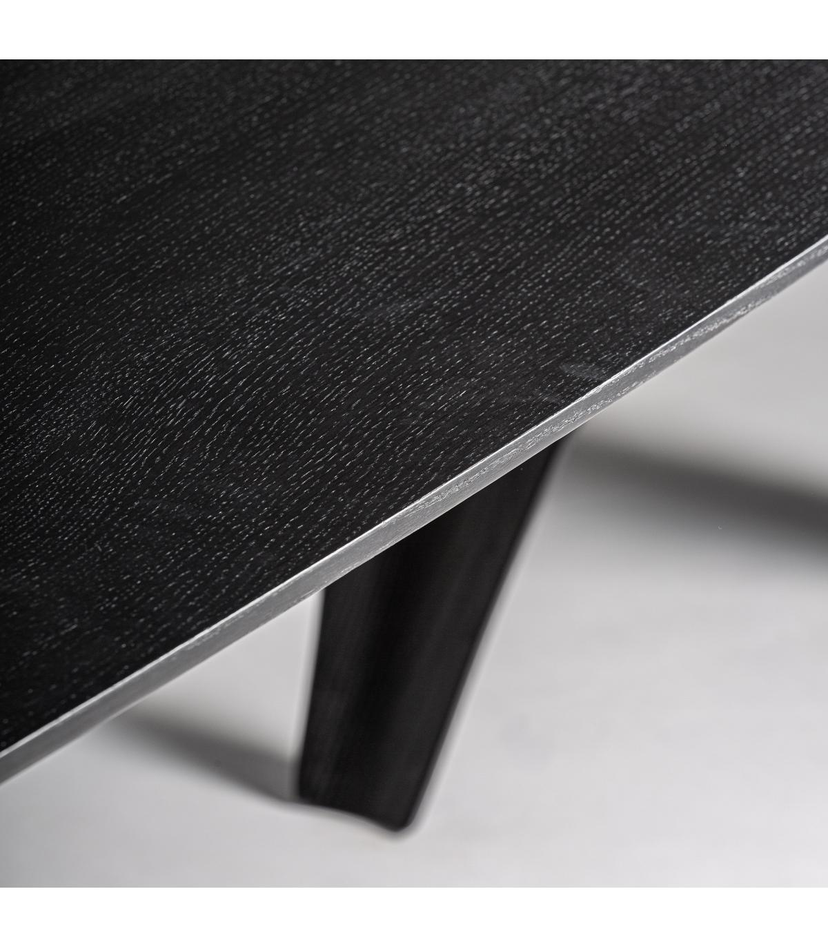 Mesa comedor bilzen de estilo contemporáneo fabricado en chapa de roble en color negro combinado con madera dm y fibra de vidrio.