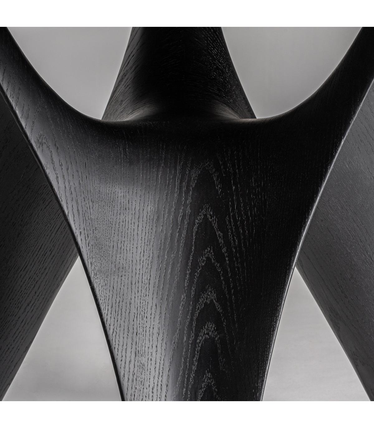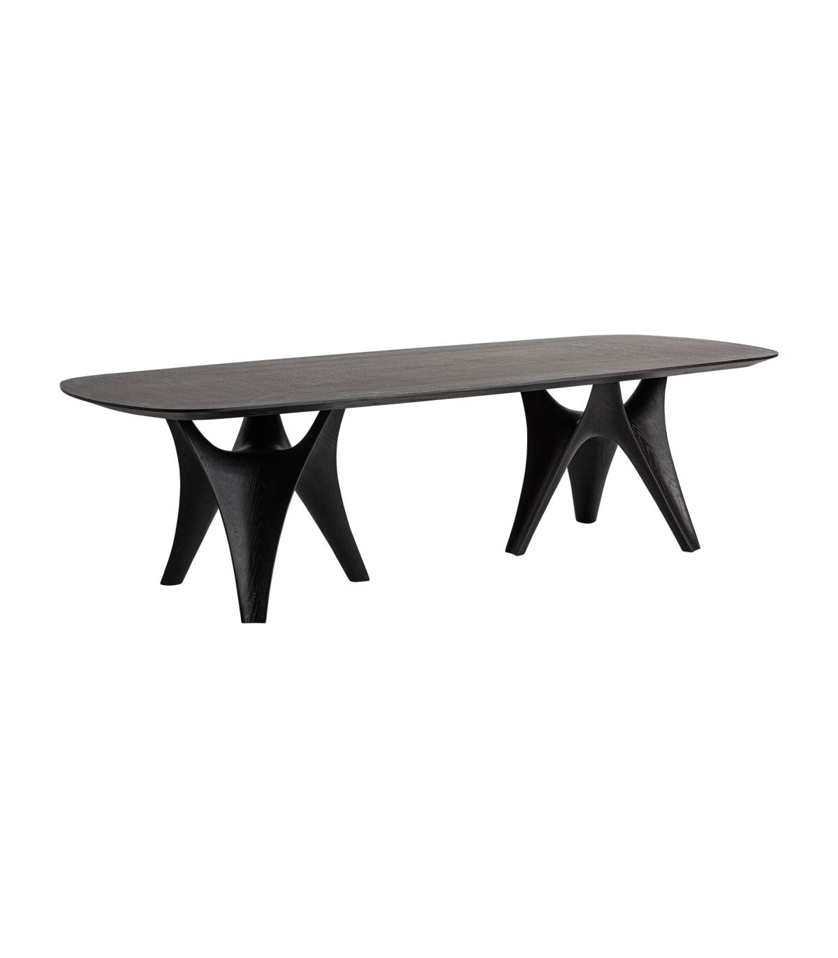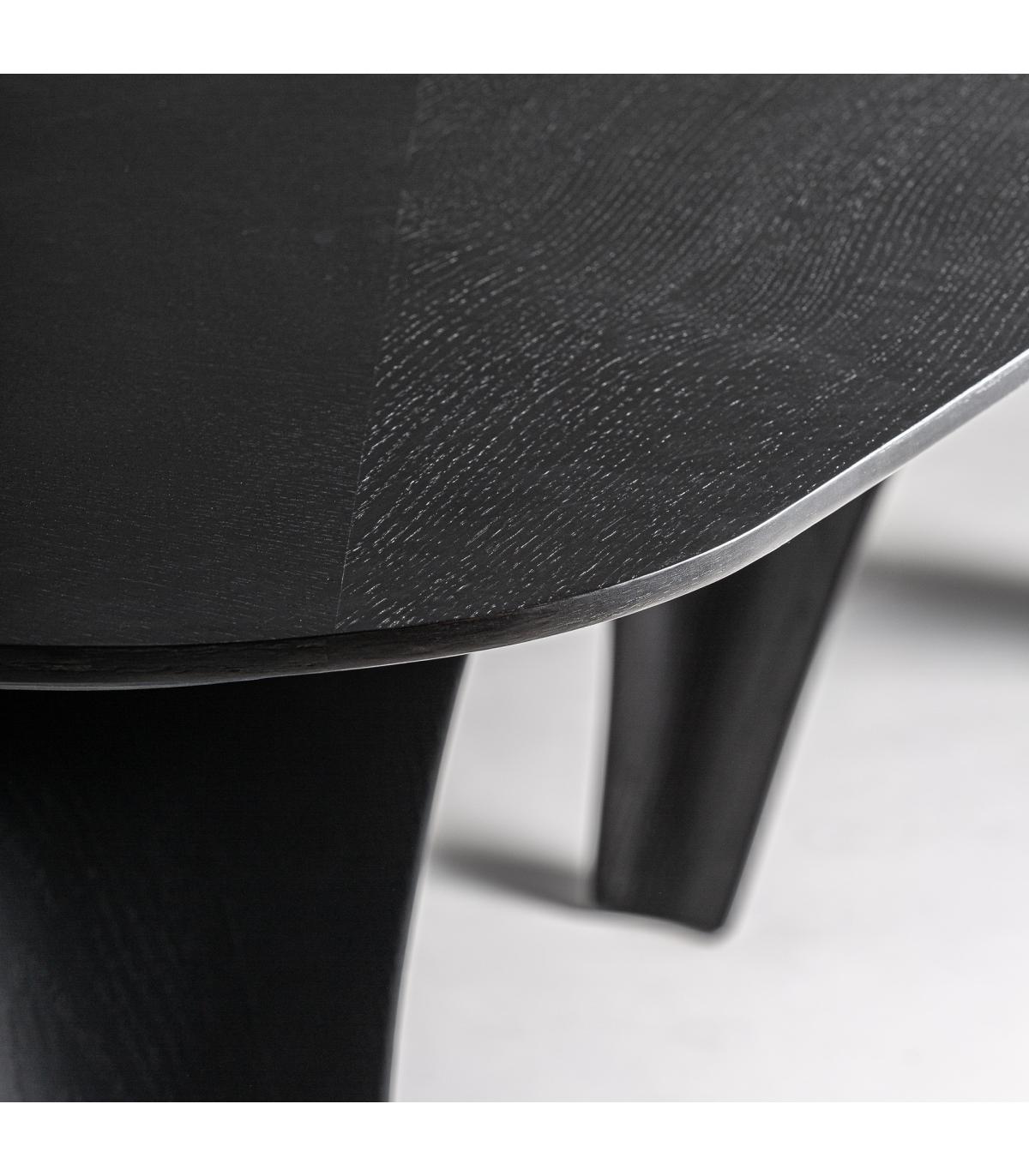 Mesa comedor bilzen de estilo contemporáneo fabricado en chapa de roble en color negro combinado con madera dm y fibra de vidrio.