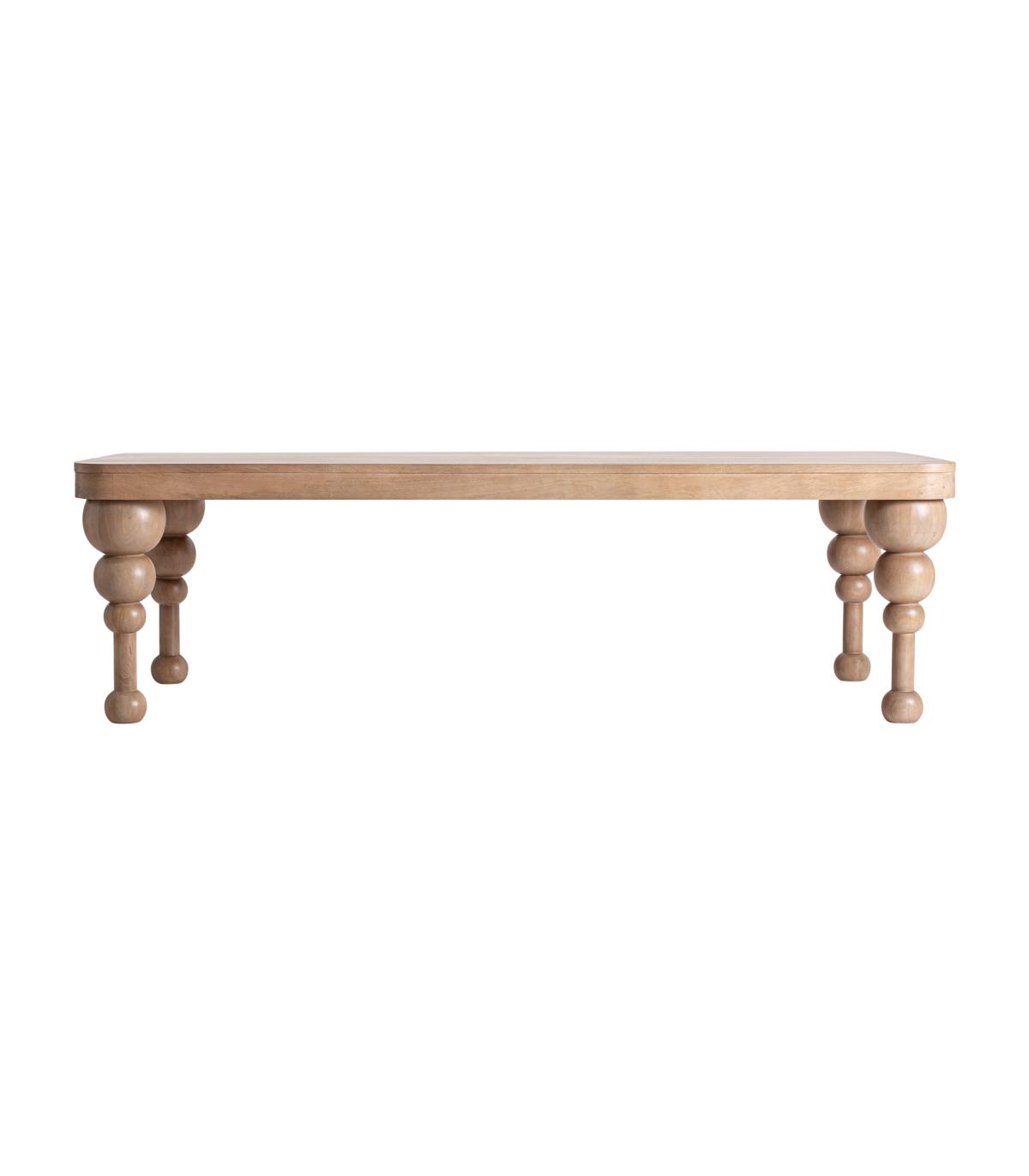 Mesa comedor Bocksberg de estilo contemporáneo fabricado en madera de mango en color marrón claro. Producto desmontable.