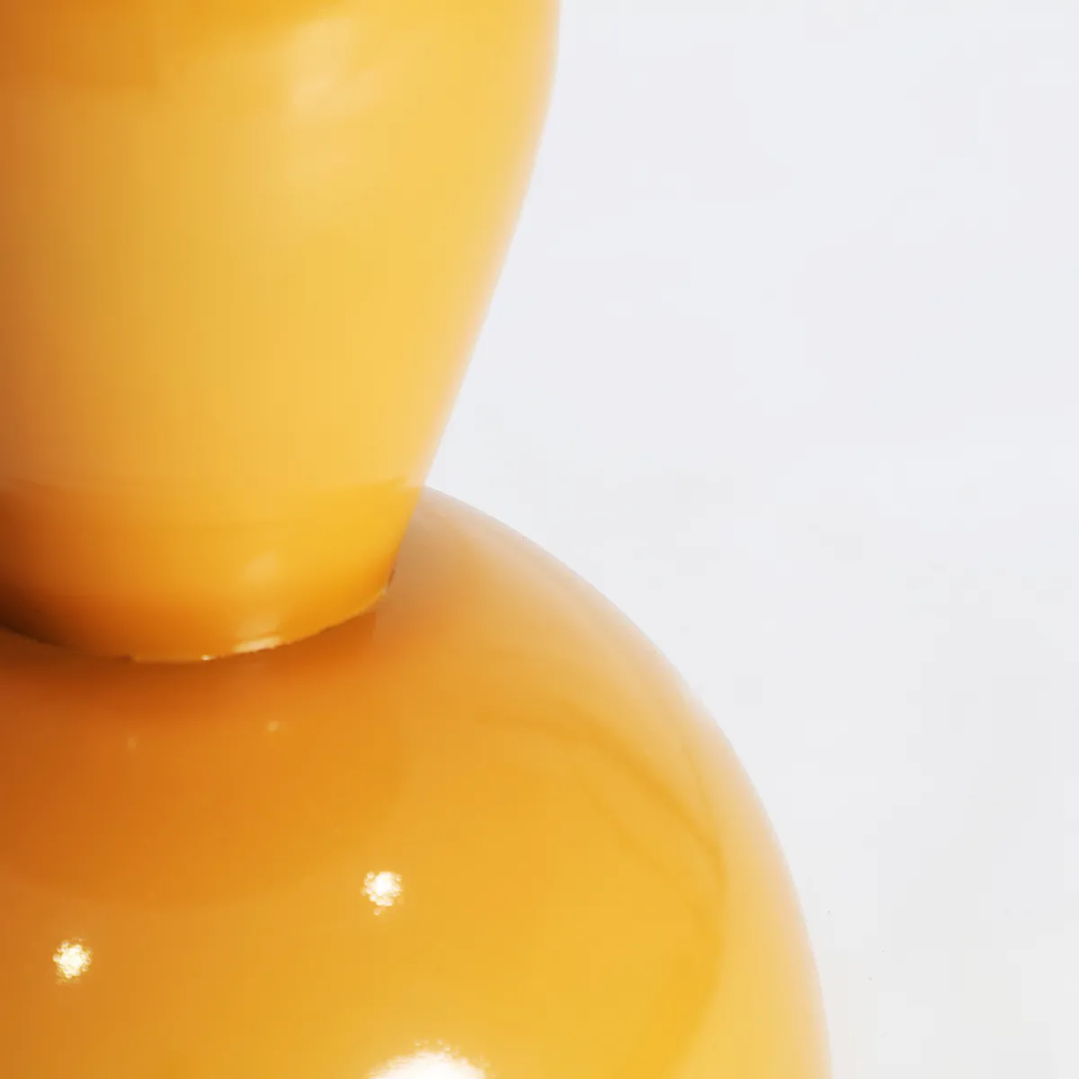 Mesa comedor Nahina de estilo contemporáneo, fabricado en hierro en color ocre con acabado brillo, combinado con madera de mango en color marrón. Producto desmontable.