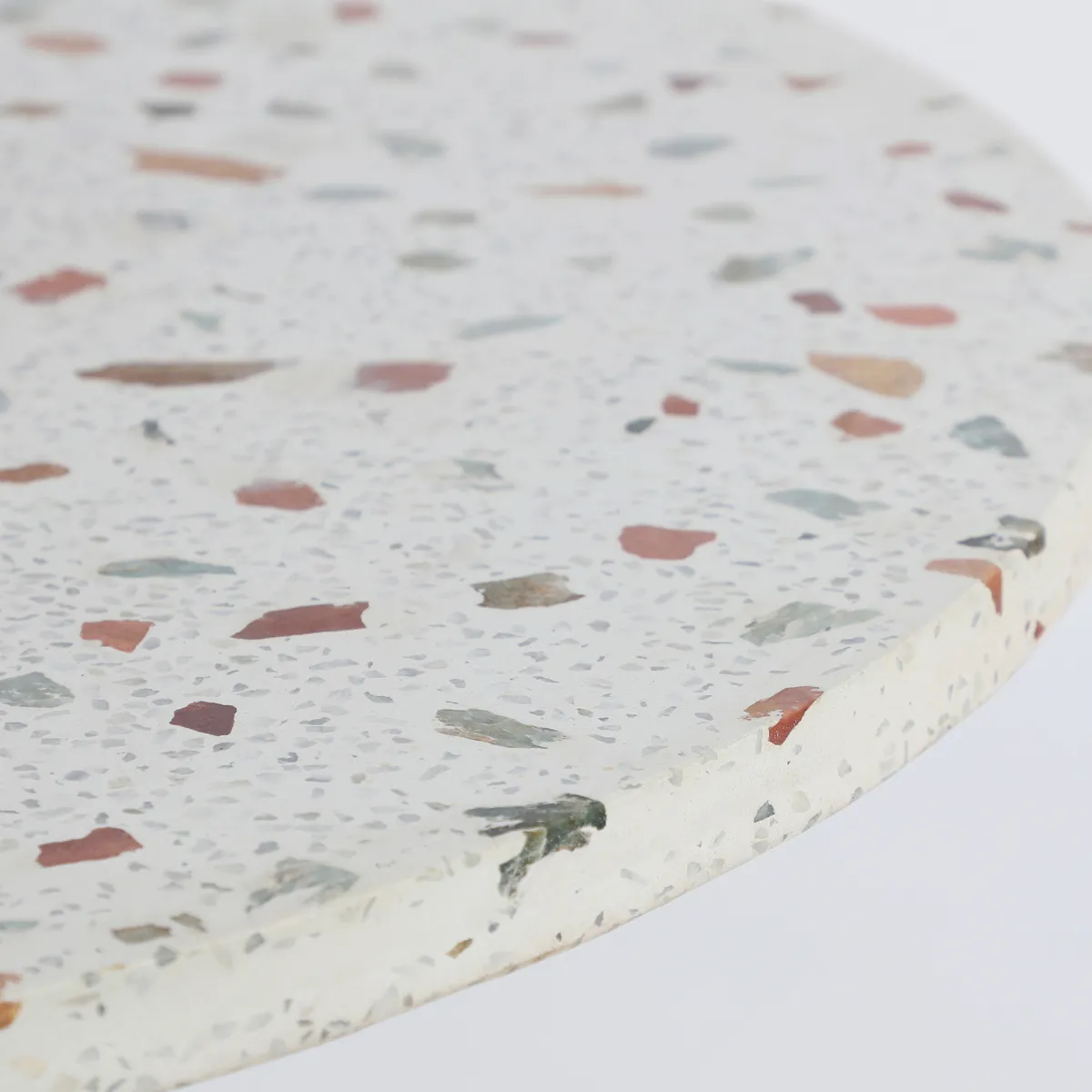 Mesa comedor Lautrec de estilo nórdico, fabricado en terrazo en color blanco, combinado con madera de mango en color marrón. Producto desmontable.