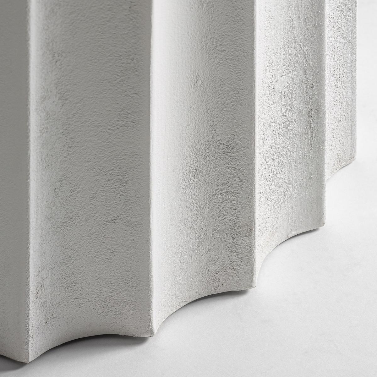 Mesa comedor mulcey de estilo contemporáneo fabricado en resina en color blanco con acabado rugoso combinado con madera dm. Producto desmontable.