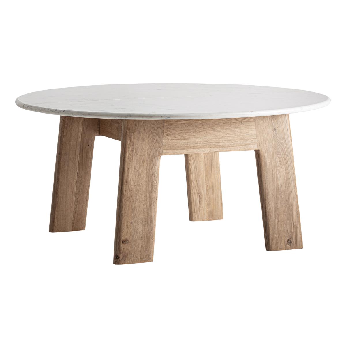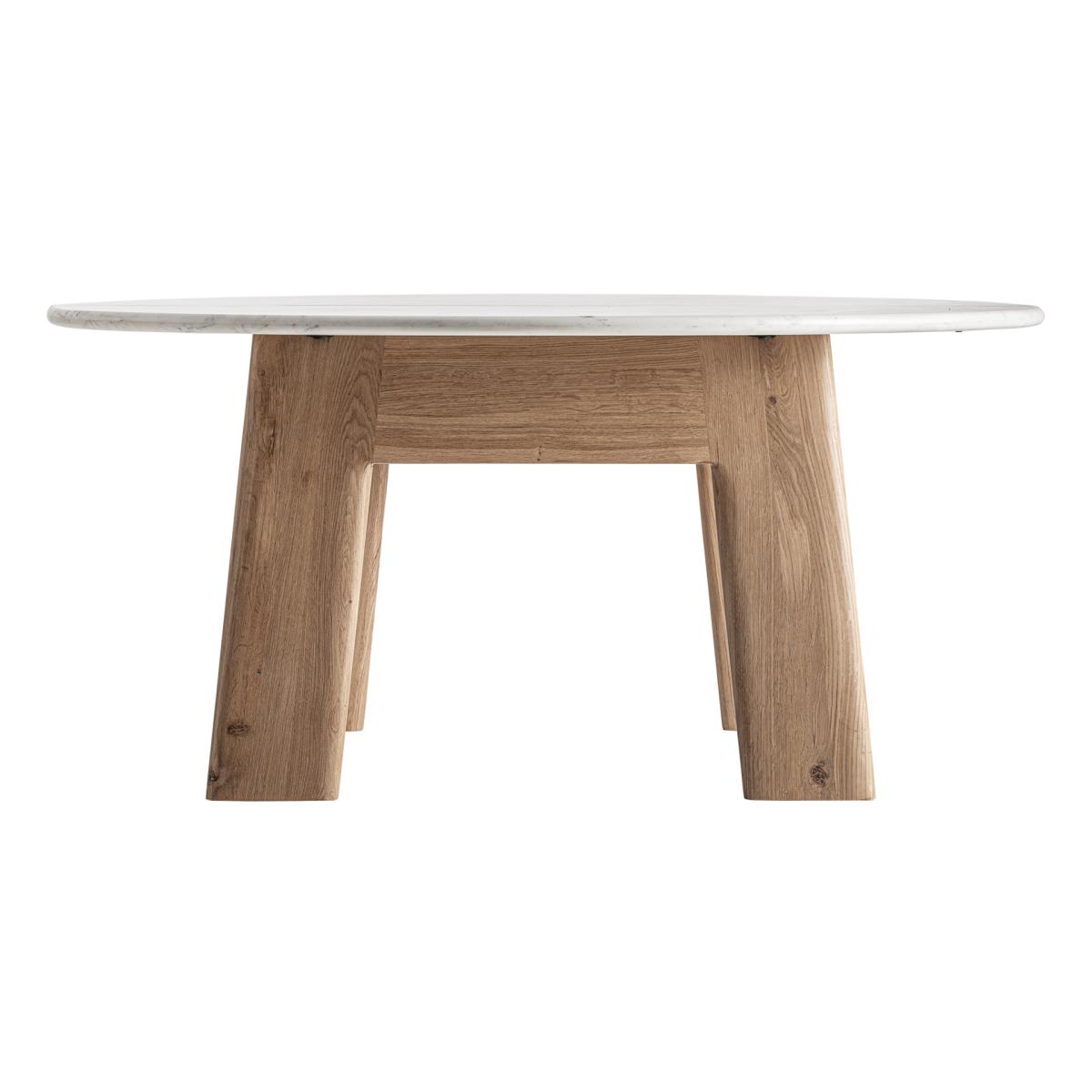 Mesa comedor Nara de estilo contemporáneo, fabricado en madera roble en color marrón, combinado con mármol en color blanco.
