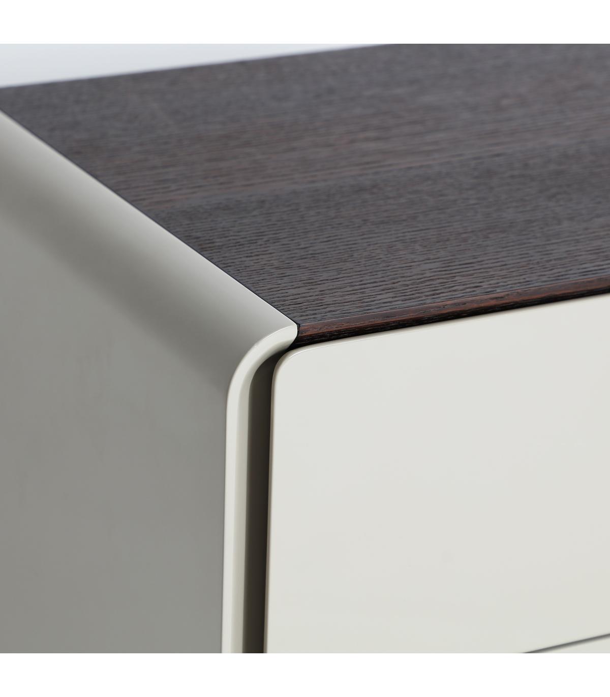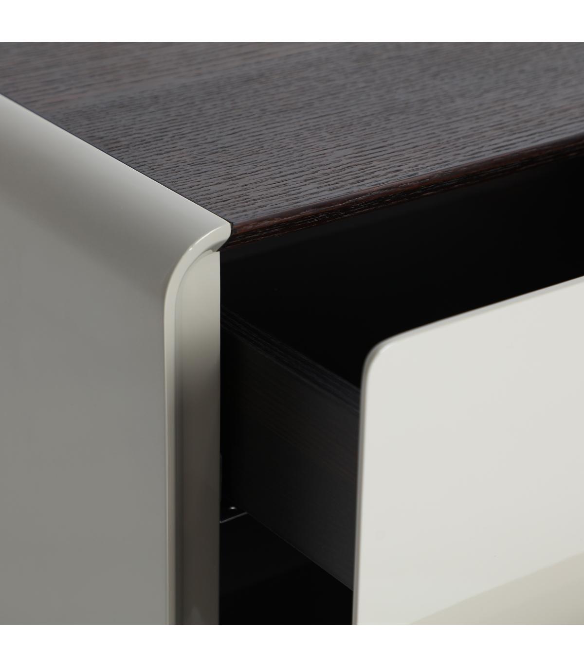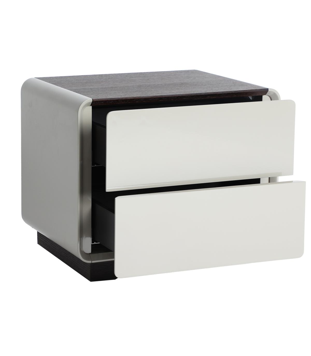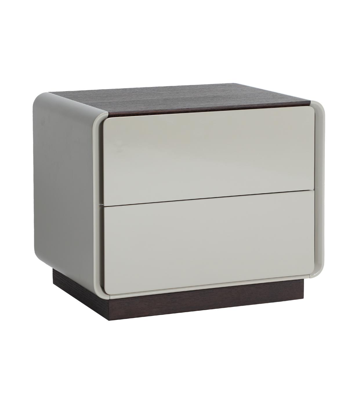 Mesita de noche Kist de estilo minimalista, fabricado en madera dm en color gris, combinado con chapa de roble en color marrón.