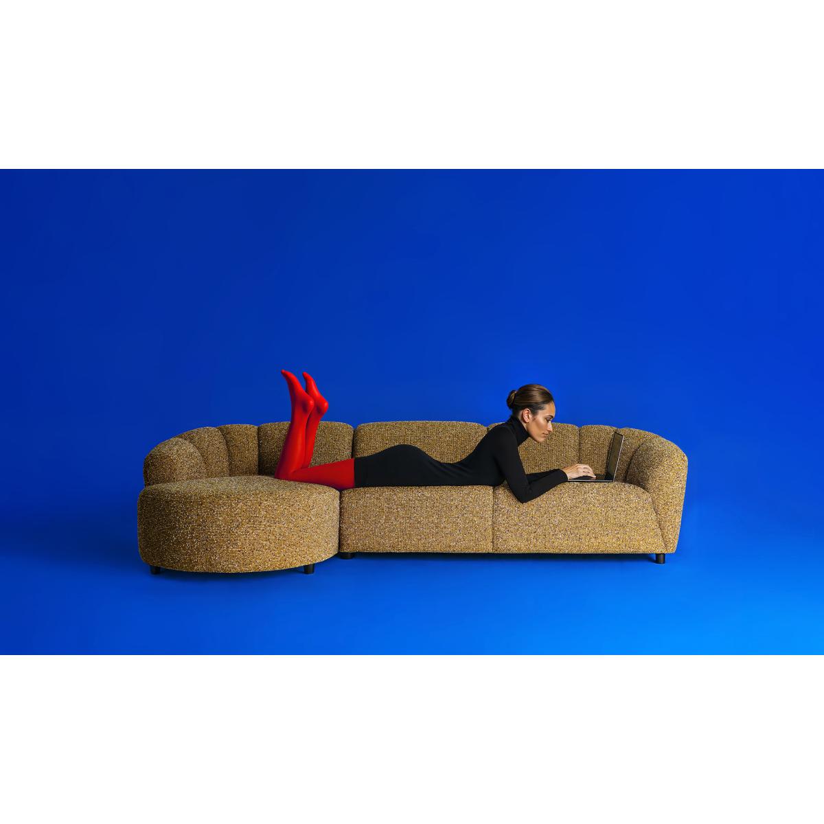 Sofá Arbois de estilo contemporáneo, fabricado en poliéster en color tonos en marrón con acabado jaspeado, combinado con madera eucalipto y espuma. Producto desmontable.