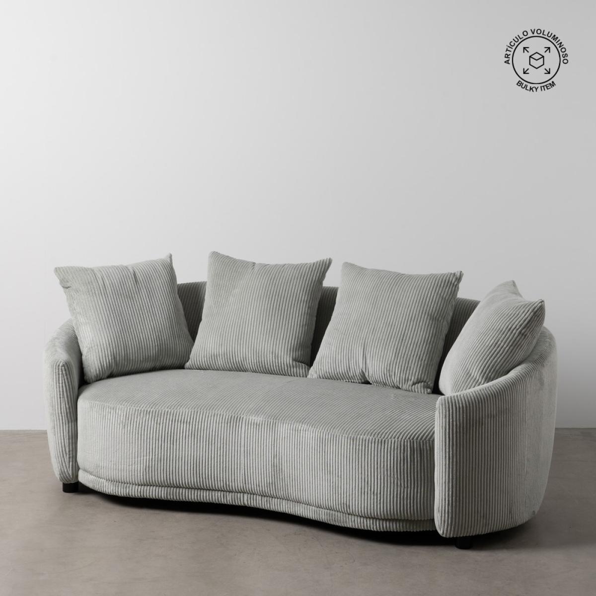 SOFÁ 3 PLAZAS HIELO TEJIDO SALÓN 197 X 96 X 75 CM Material: tejido - madera conglomerada Composición tejido: 90% poliéster - 10% nilón Estructura: madera conglomerada Altura asiento: 40cm. Altura pata: 4.5cm. Altura respaldo: 40cm. Profundo asiento: 66cm. Ancho asiento: 160cm. 4 cojines desenfundables con cremallera. Cumple normativa: EN16139:2013
