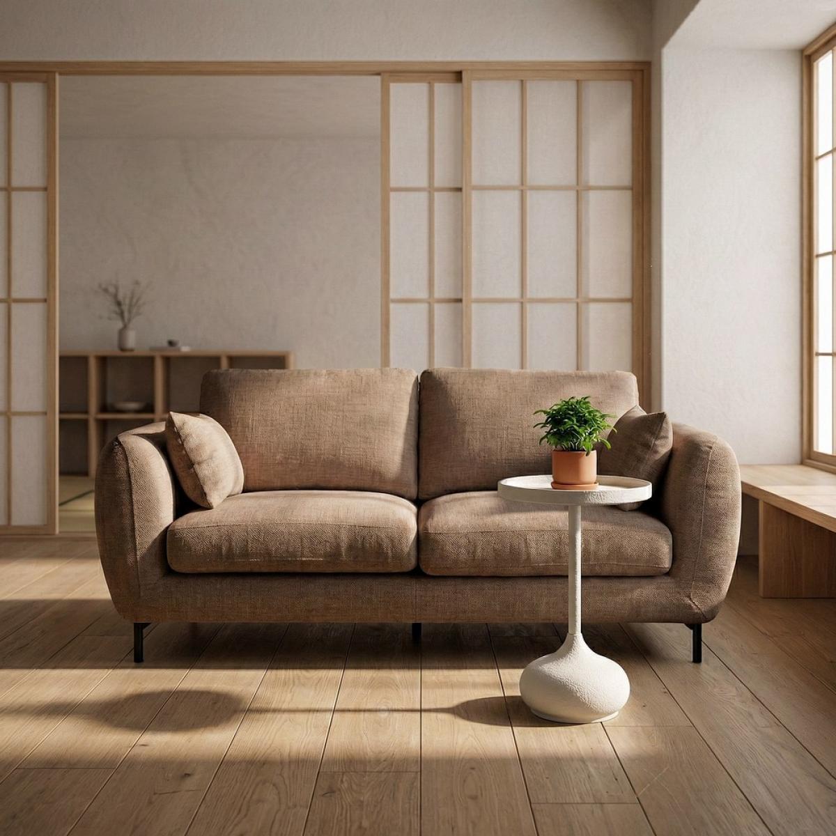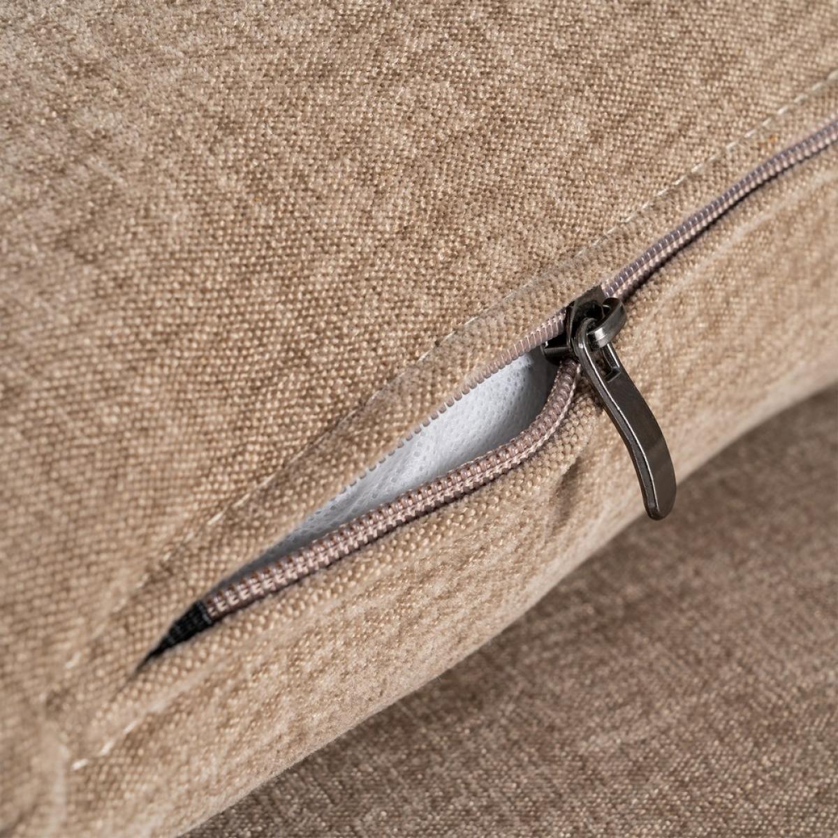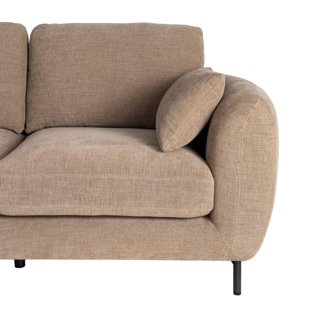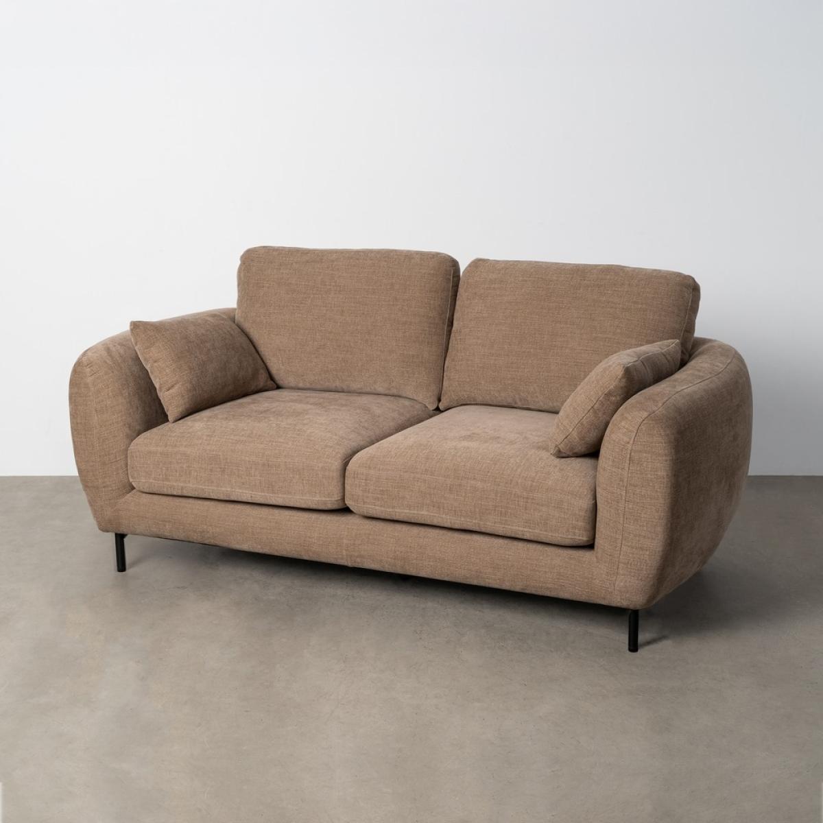 SOFÁ 2 PLAZAS MARRÓN CLARO TEJIDO-METAL 189 X 92 X 88 CM Material: 97% poliéster - 3% lino. Patas: metal hierro. Patas para montar. Asiento: Foam 28kgr./m3. Trasera: Foam 22kgr./m3 Respaldo: fibra. Medida cojines: laterales 48x30 - respaldo 70x46cm. Cojines desenfundables con cremallera, asiento respaldo y laterales. Altura asiento: 45cm. Altura pata: 12.5cm. Ancho asiento: 136cm. Profundo asiento: 56cm. Altura reposabrazos desde el suelo: 68cm. Altura respaldo: 43cm. Cumple normativa: EN12520:2025