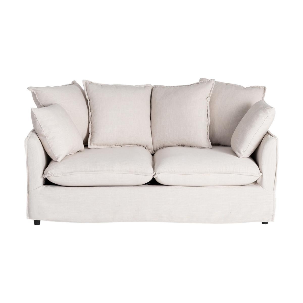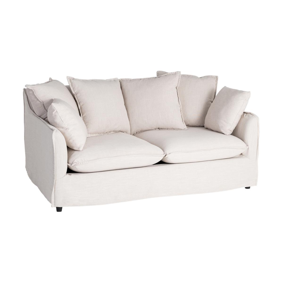 SOFÁ 2 PLAZAS BEIGE DM-TEJIDO SALÓN 158 X 102 X 77 CM Tejido: Poliéster-lino. DENSIDAD: 28 Kg/m3. Patas de plástico, color negro. Estructura:DM. Altura del asiento: 44 cm Altura del reposabrazos:60cm. Cojines desenfundables. 4 cojines grandes:55x55cm. 2 cojines pequeños: 40x40cm. Lavar en seco. Las patas requieren montaje. Peso máximosoportado:135kgs. Cumple con la normativa UNE-EN 12520:2025.