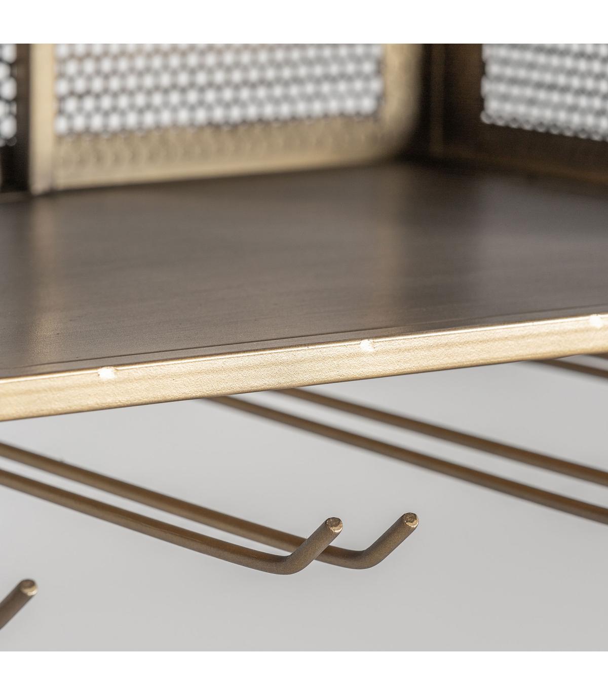 Mueble bar bretten de estilo art deco fabricado en hierro en color oro. Soporta 20 kg aprox. Y caben 4 copas por aplique. Producto desmontable.