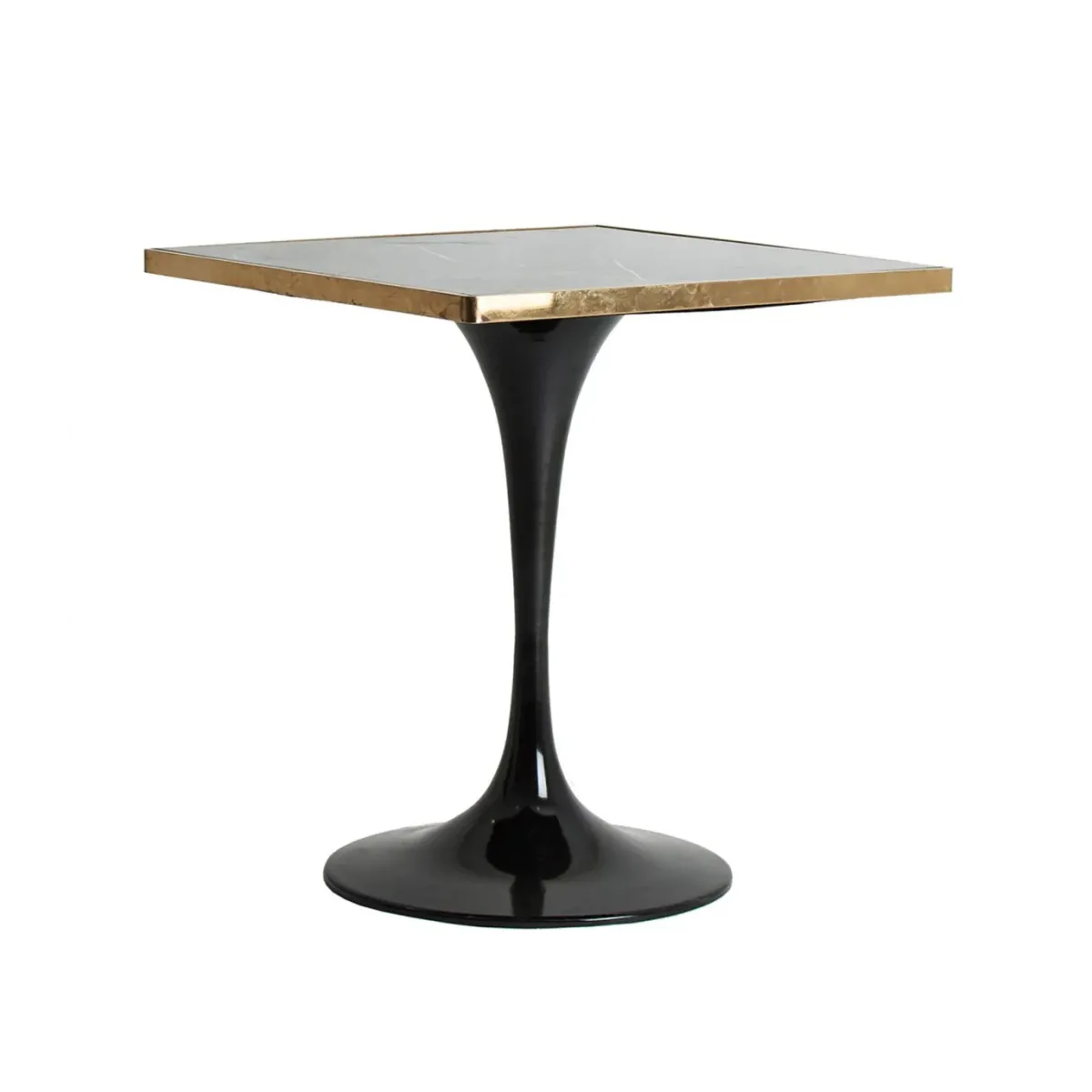 MESA BAR CUADRADA THAN, EN COLOR NEGRO, DE ESTILO ART DECO, COMBINADO CON HIERRO Y ACERO. GRANITO CON ACABADO MÁRMOL. PRODUCTO DESMONTABLE.