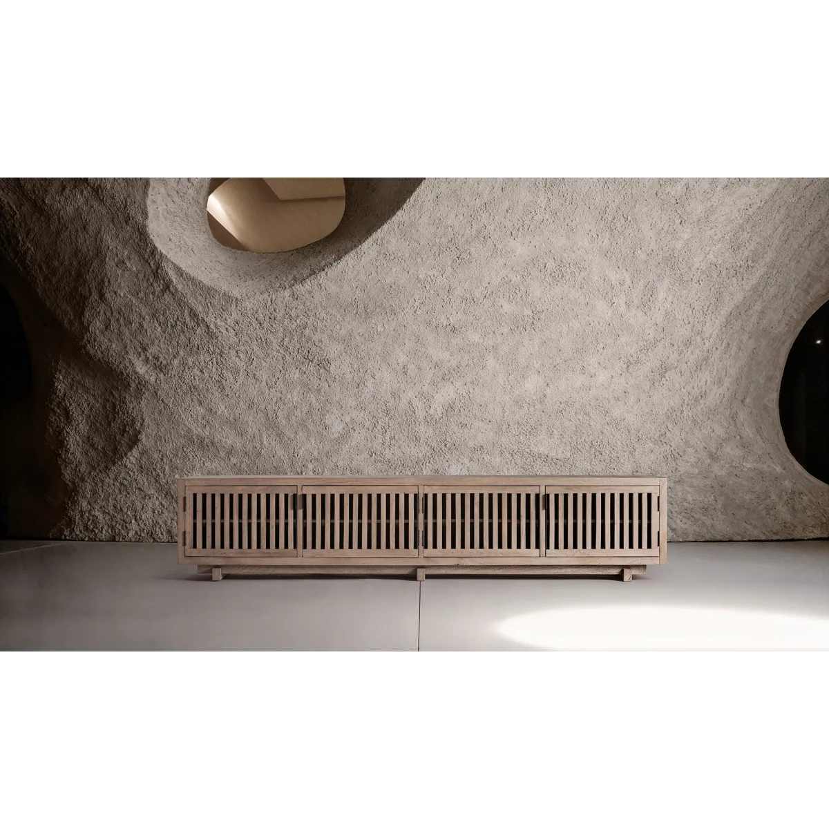 Functional art. The TV Cabinet Gabia stands out for its handcrafted manufacturing and meticulous details, ideal for high-end environments.