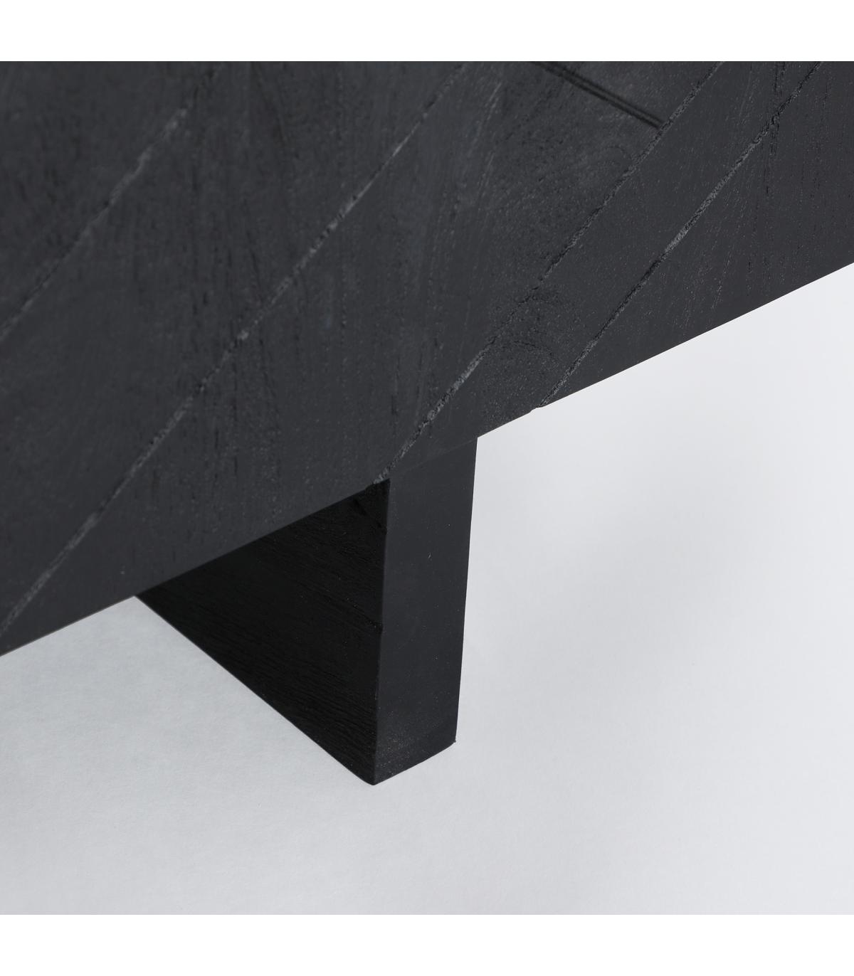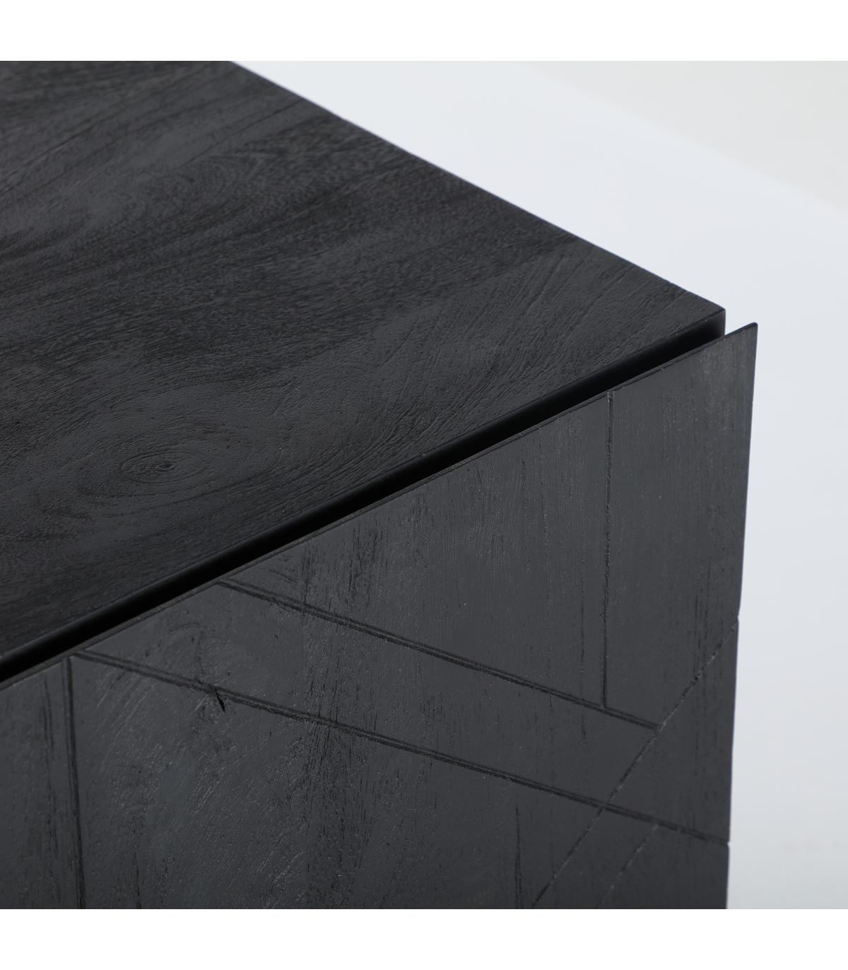 Mueble tv Bouloc de estilo contemporáneo, fabricado en madera de mango en color negro, combinado con madera dm.