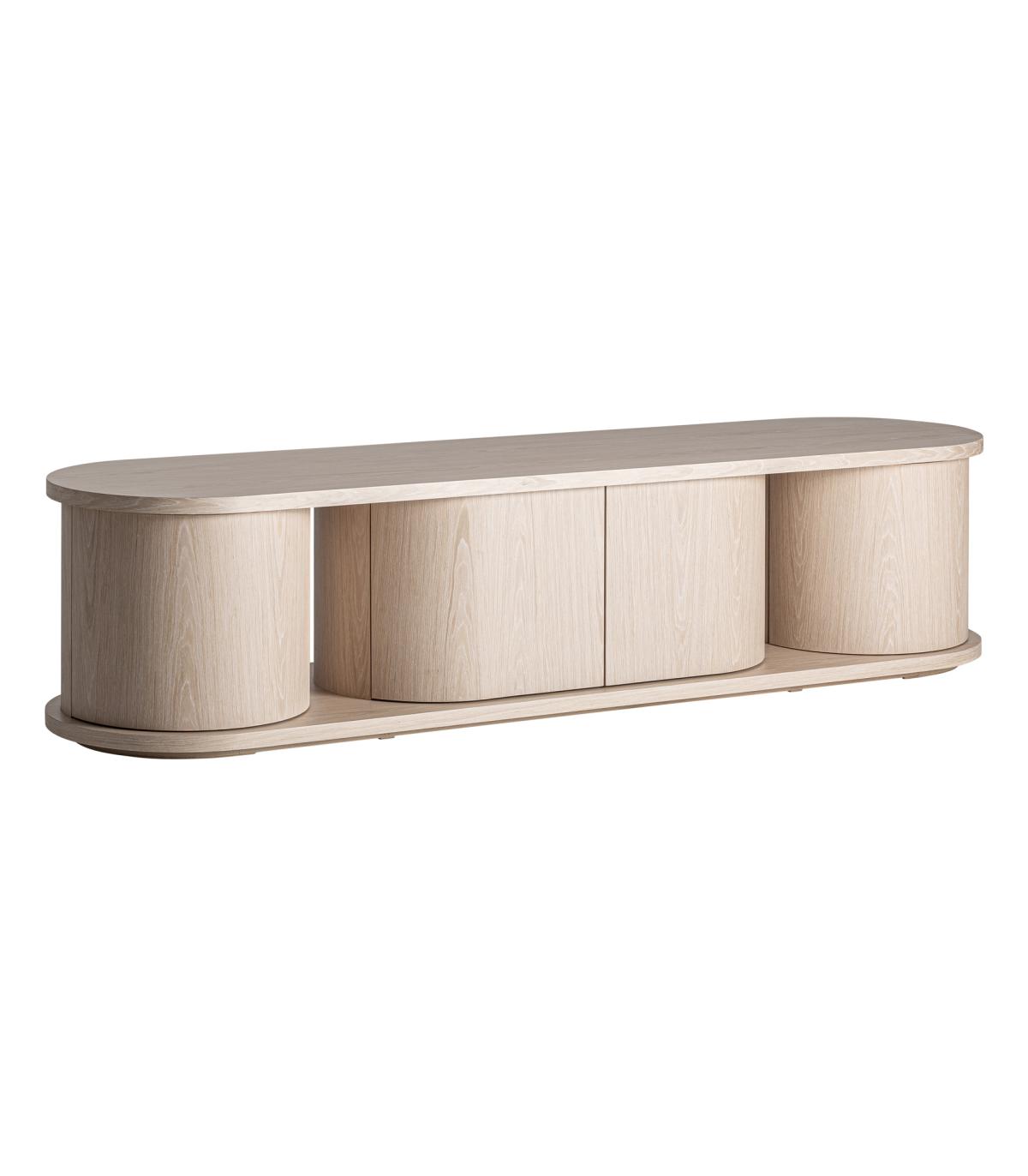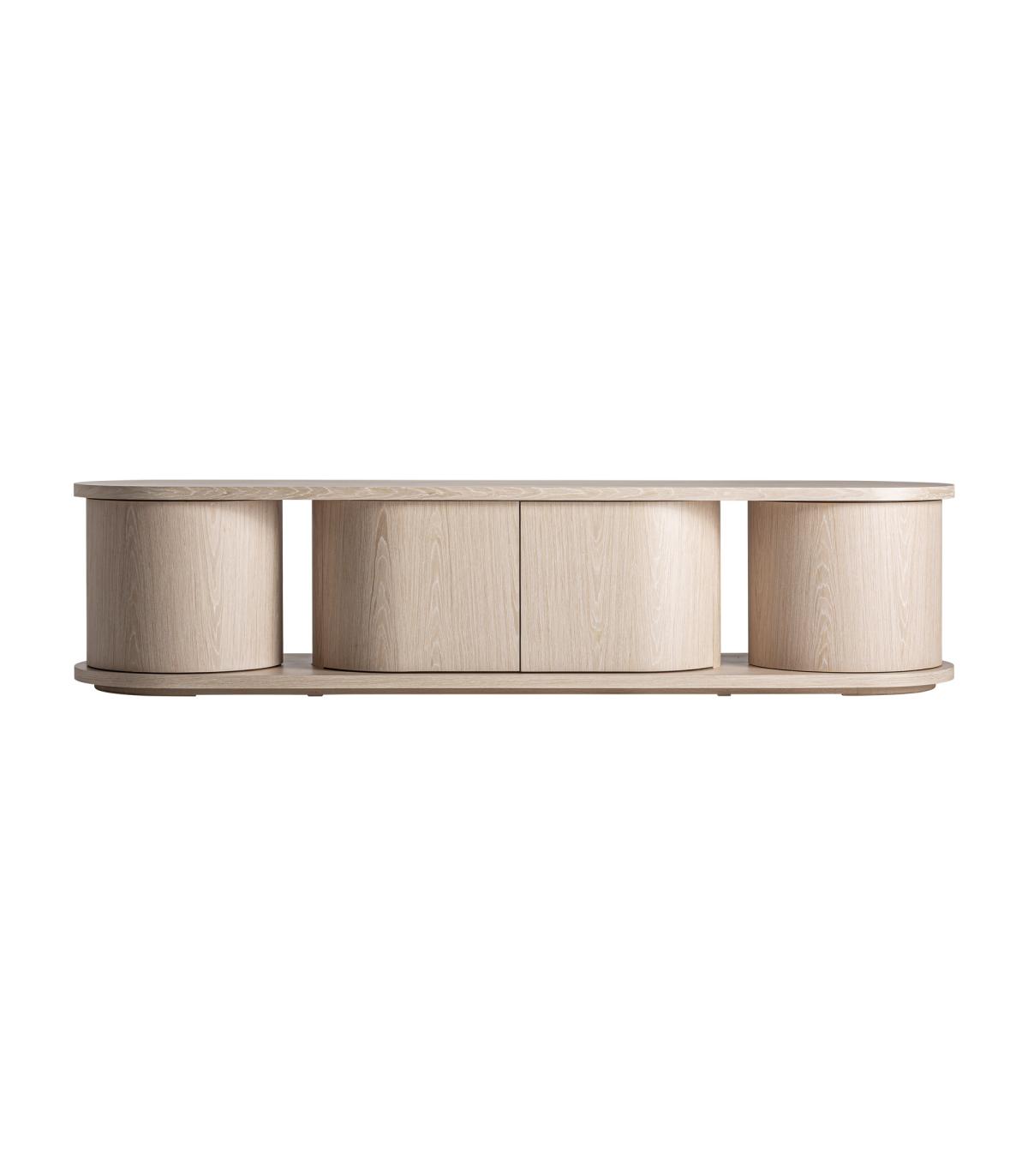 Mueble tv Kharj de estilo art deco fabricado en madera roble en color beige.