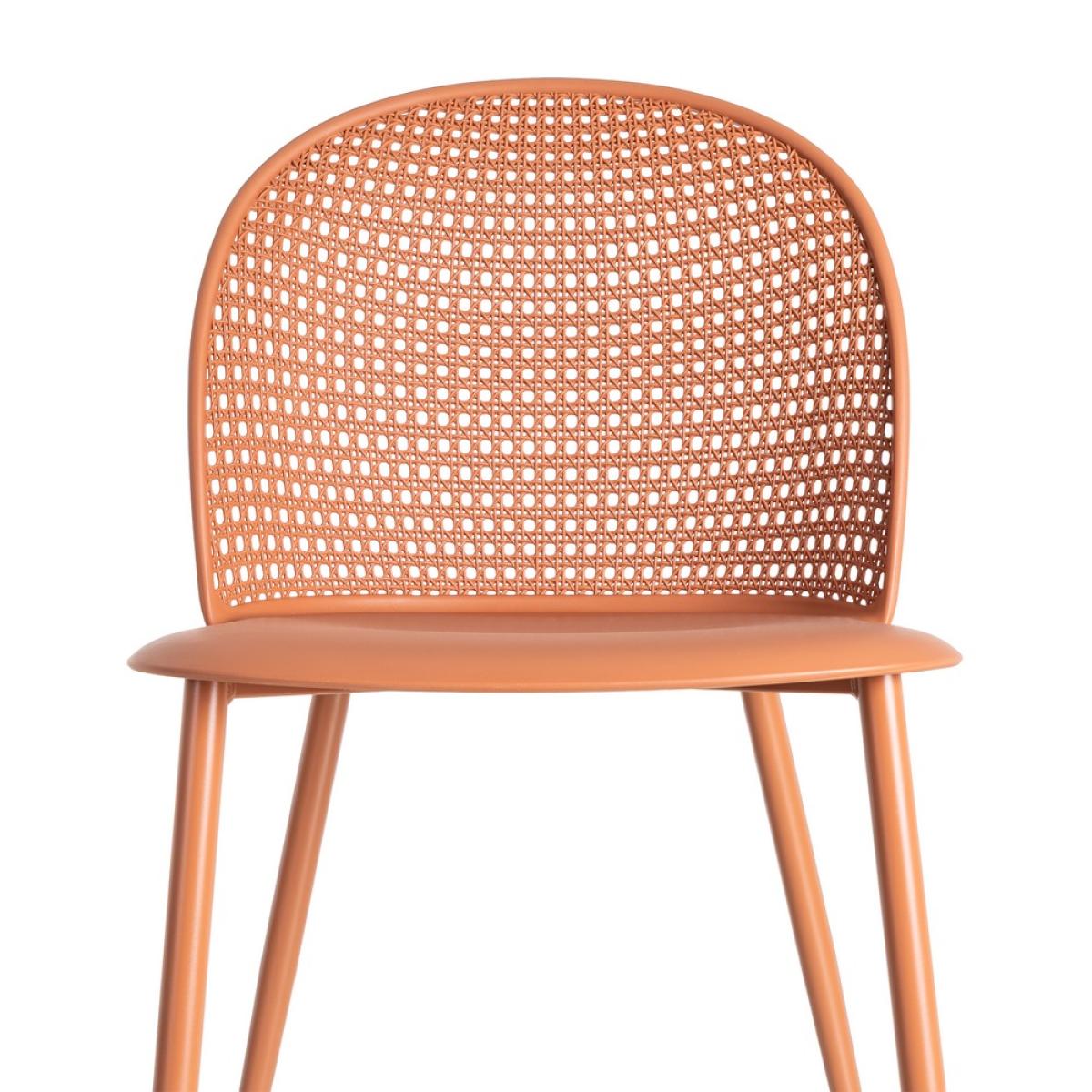 SILLA TEJA PP-METAL CONTRACT 51 X 46 X 80 CM Altura asientos: 48cm. Ancho asiento: 47cm. Profundidad asiento: 51cm. Altura respaldo: 37cm. Protección UV Material pata: acero. Material asiento: PP. Cumple la normativa EN581 (uso exterior). Los muebles y productos de exterior son aptospara permanecer a la intemperie durante la temporada, sin embargo se recomienda colocarlos bajo techado o protegerlos de la lluvia.