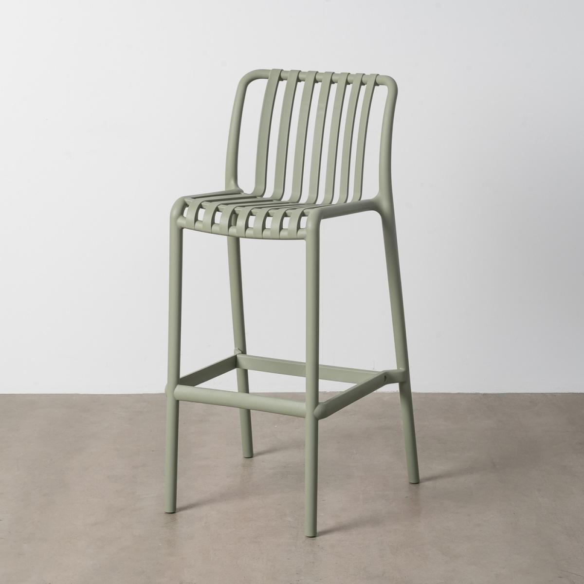 TABURETE VERDE POLIPROPILENO EXTERIOR 51 X 50 X 102 CM Material: polipropileno. Altura asiento: 75cm. Ancho asiento: 38cm. Altura respaldo: 32cm. Altura reposapiés: 28cm. No apilable.