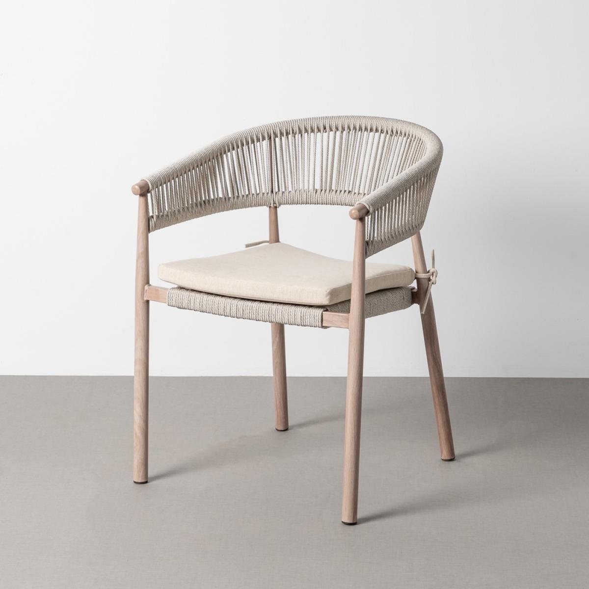 SILLA ACERO-RATTÁN PE EXTERIOR 57 X 58 X 77 CM Material: acero, PE ratán. Altura asiento: 45cm. Ancho asiento: 44cm. Profundidad asiento: 44cm. Altura respaldo: 35cm. Altura reposabrazos: 22cm (69,5cm desde el suelo). Tejido 100% olefina. Relleno de foam y polifibra. Cojines desenfundables. Cumple la normativa EN581 (uso exterior). Los muebles y productos de exterior son aptos para permanecer a la intemperie durante la temporada, sin embargo se recomienda colocarlos bajo techado o protegerlos de la lluvia, ya que el tejido no es a prueba de agua. Una vez acabada la temporada, se recomienda guardar o proteger adecuadamente para asegurar su mantenimiento.