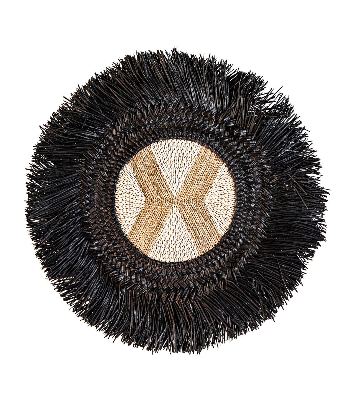 Panel decorativo de estilo boho fabricado en rafia en color negro.