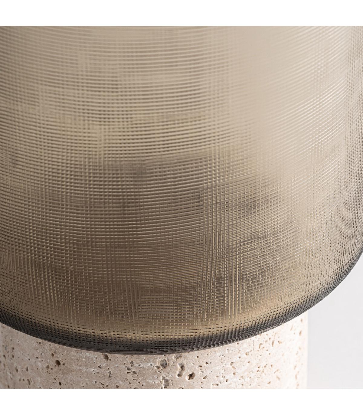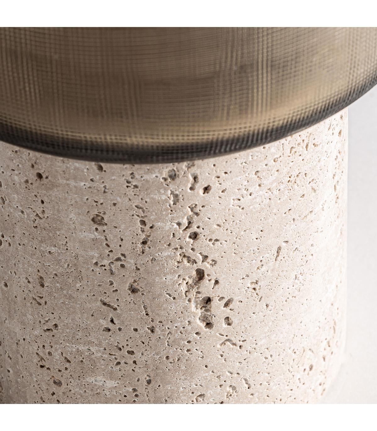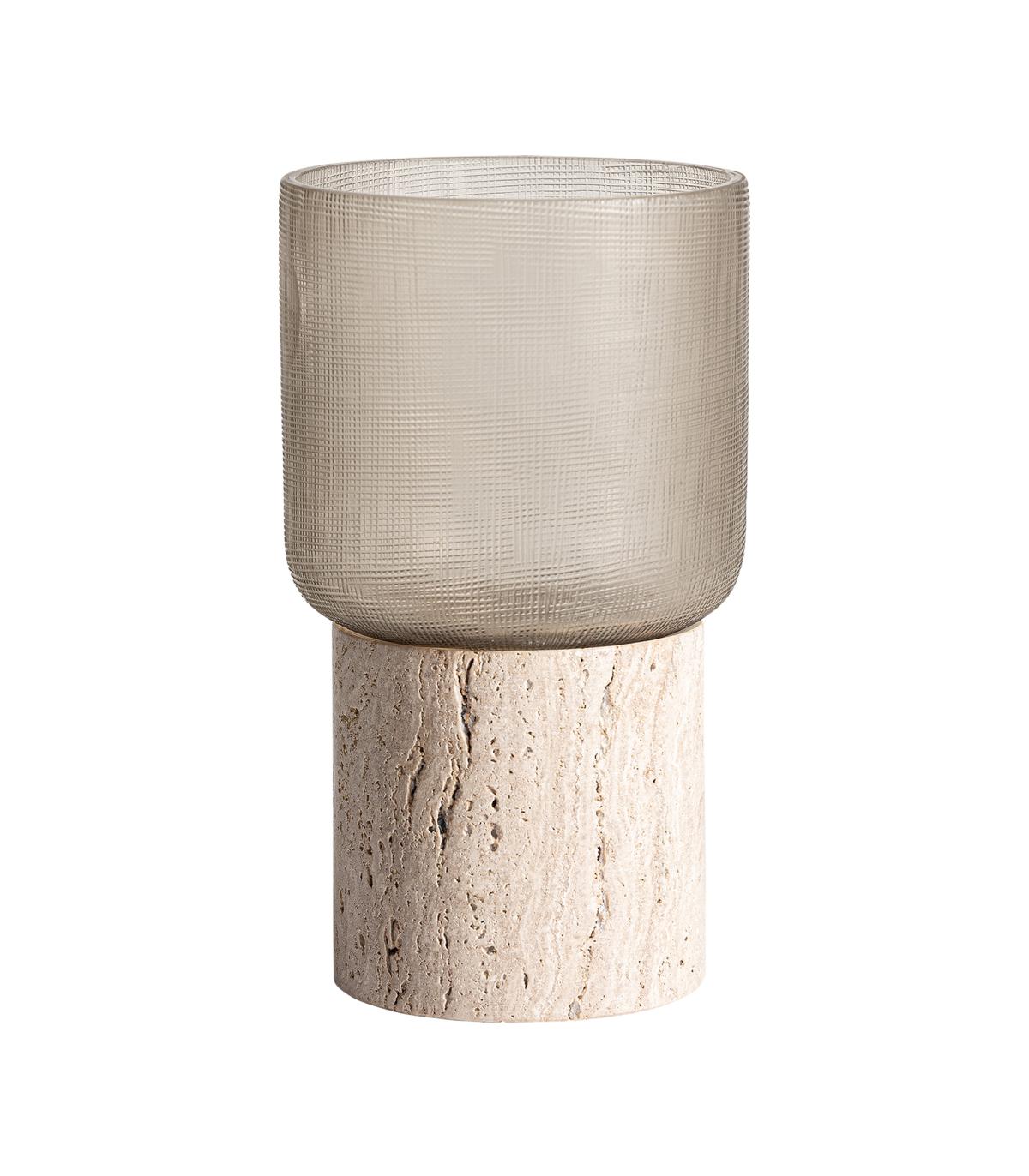 Portavela jasha de estilo contemporáneo fabricado en mármol en color crema combinado con cristal. Producto desmontable.