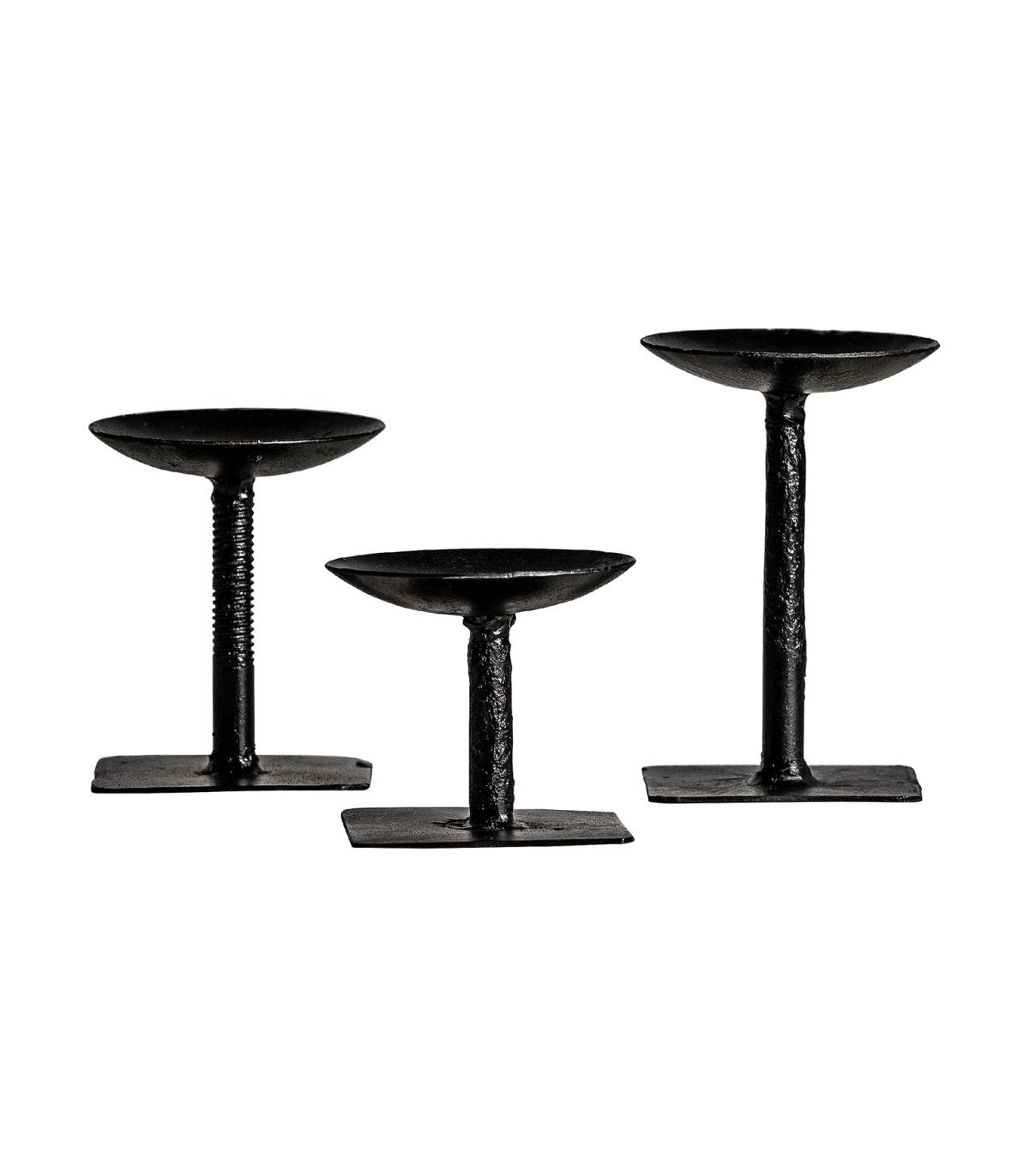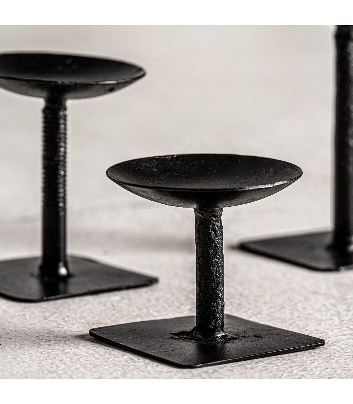 Portavela j 3 en color negro de estilo étnico. Fabricado en madera de mango reciclada.