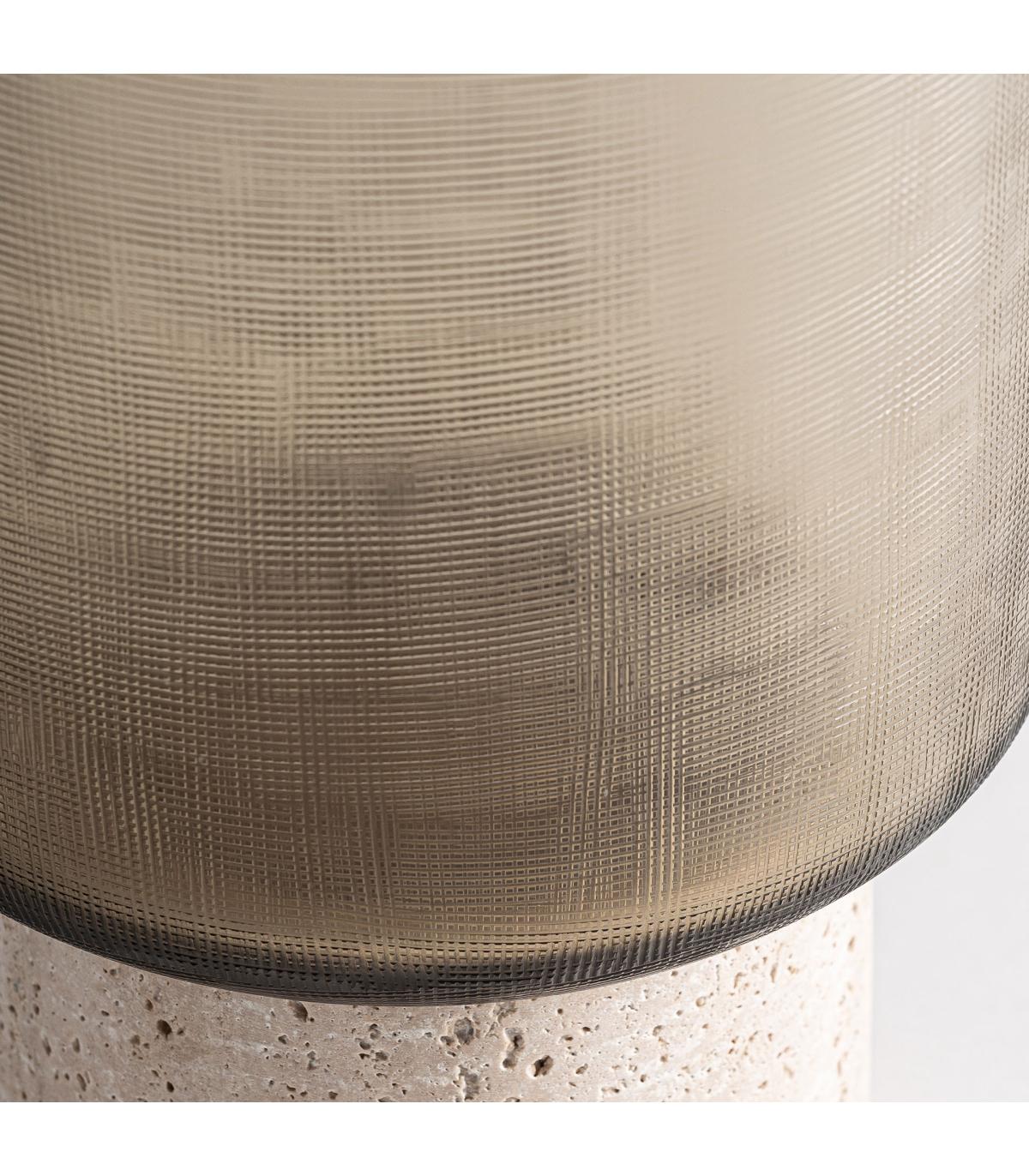 Portavela jasha en color crema de estilo contemporáneo. Fabricado en mármol combinado con cristal. Producto desmontable.