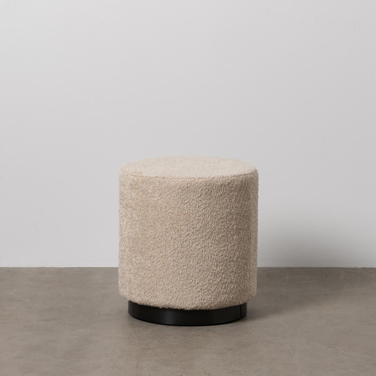 PUF BEIGE TEJIDO-METAL SALÓN 41 X 41 X 44 CM Material: tejido (100% poliéster), metal, espuma densidad 25, madera de pino y dm.