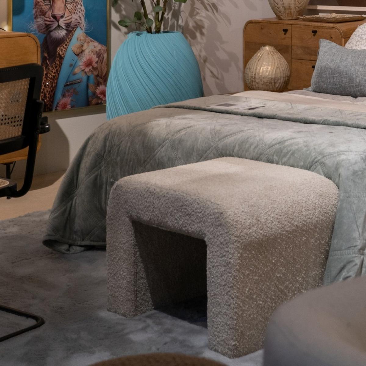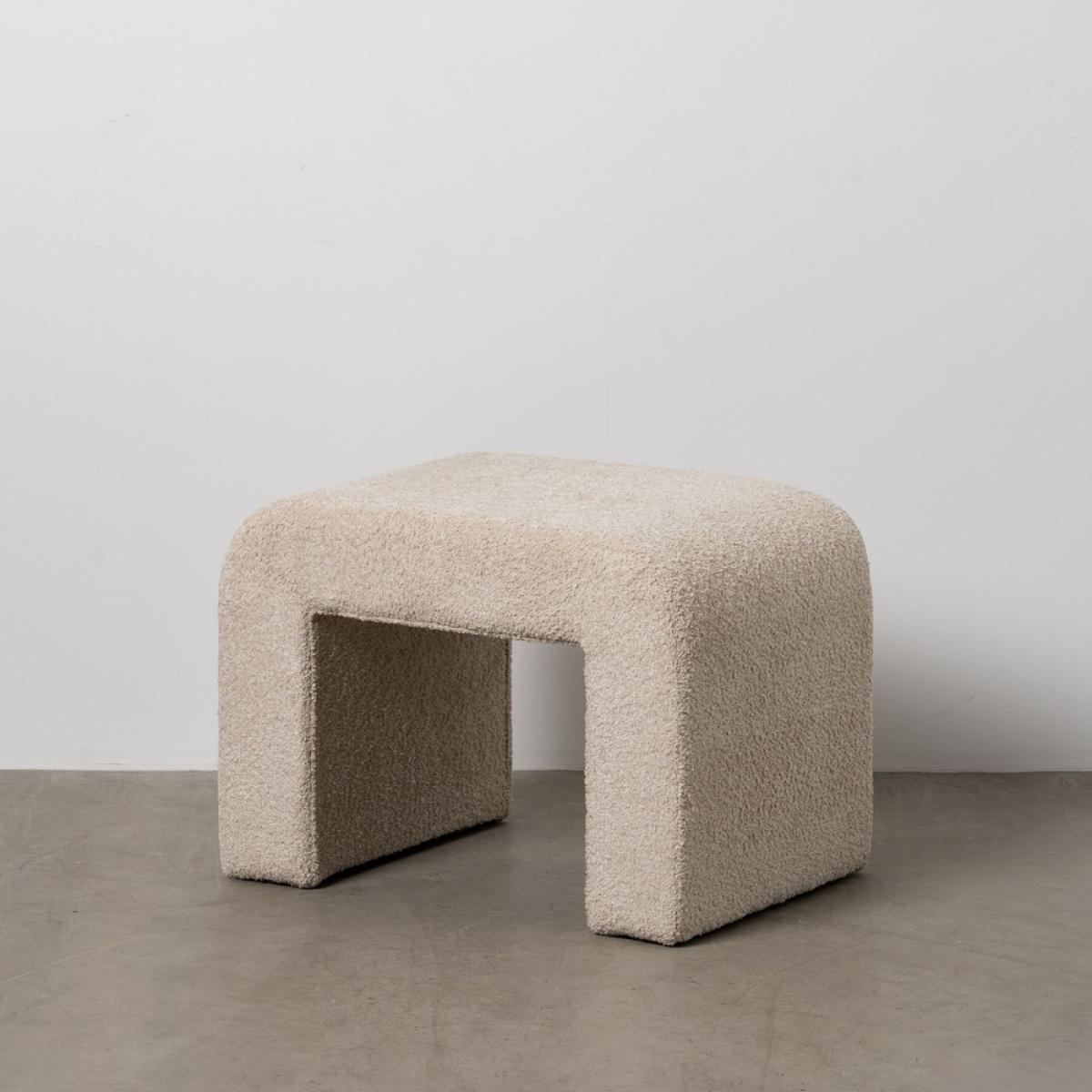 TABURETE BEIGE TEJIDO SALÓN 67 X 48 X 47 CM Material: tejido (100% poliéster), espuma densidad 25, madera de pino y madera contrachapada.