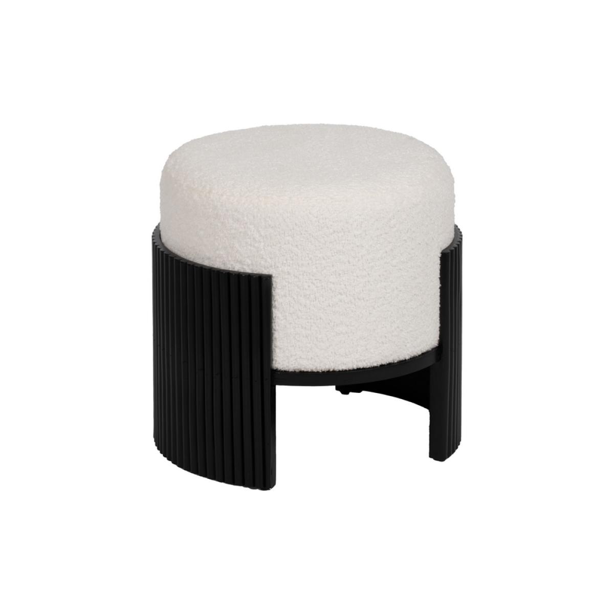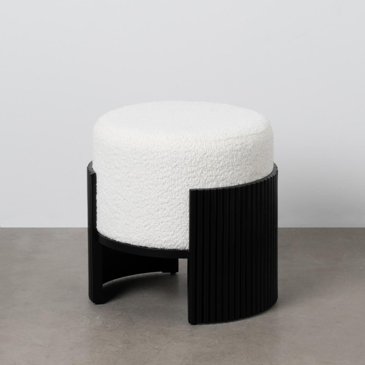 PUF BLANCO-NEGRO DM-TEJIDO 43 X 43 X 41 CM Material: estructura Dm - tejido 100% poliéster chenilla (510gms) - patas madera de pino. Foam: 30mm.