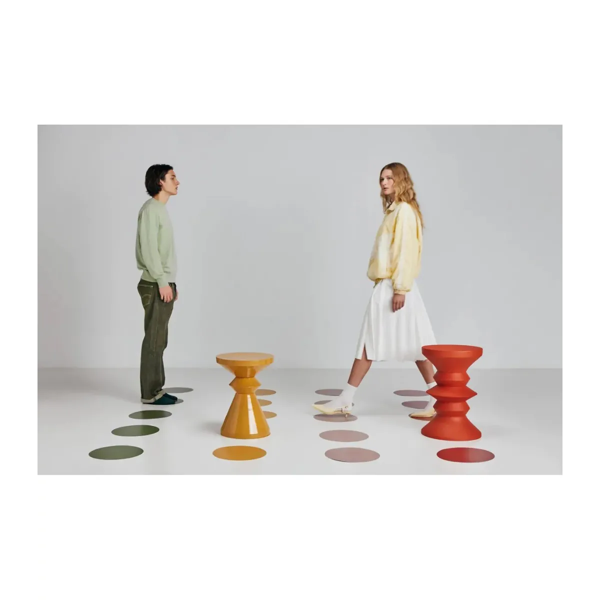 Mesa auxiliar irregular olten de estilo contemporáneo, fabricado en hierro en color naranja.