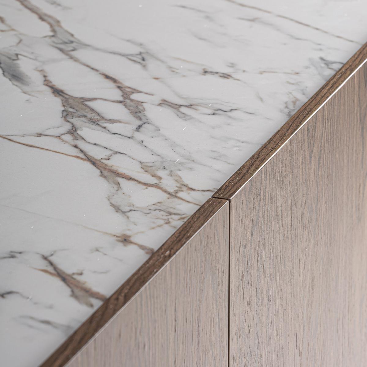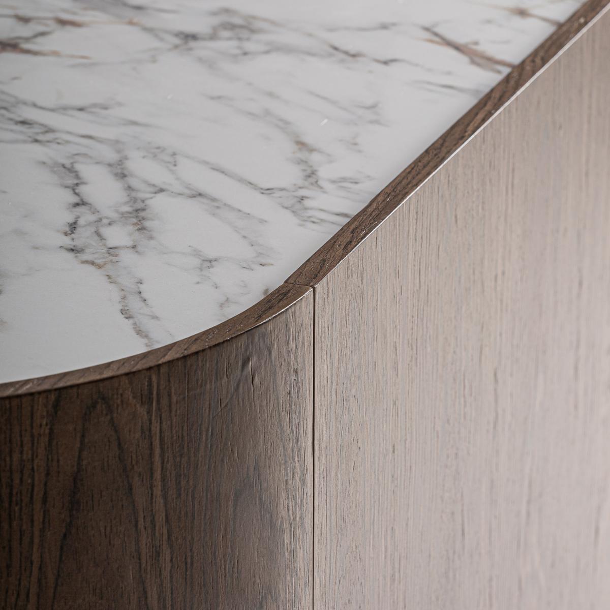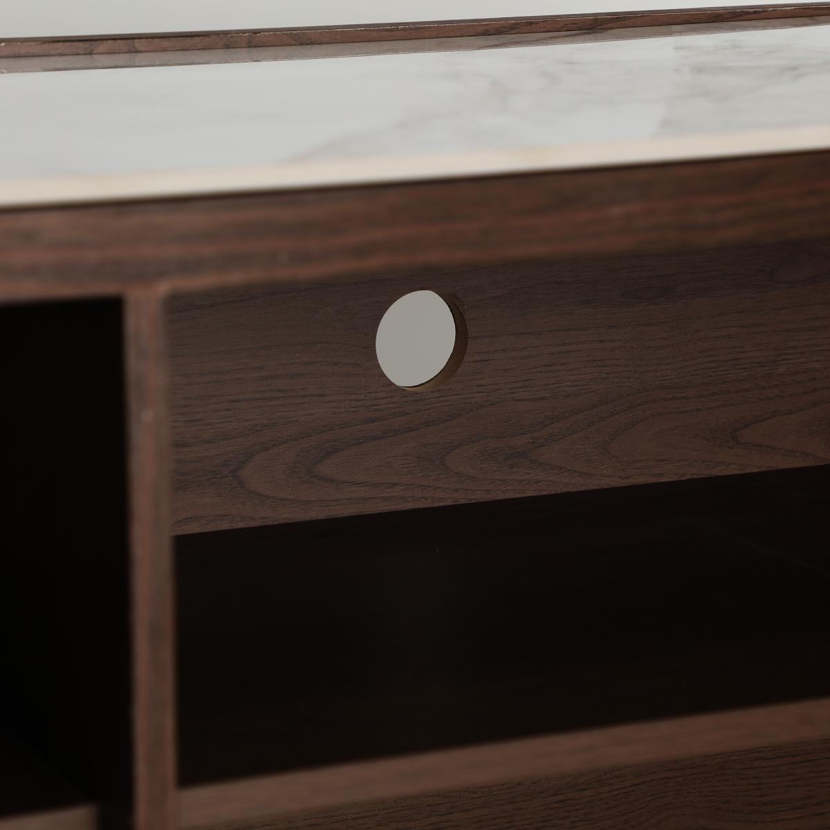 Mueble tv Arko de estilo contemporáneo, fabricado en madera dm en color marrón, combinado con chapa de madera.