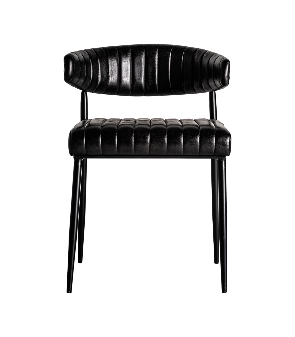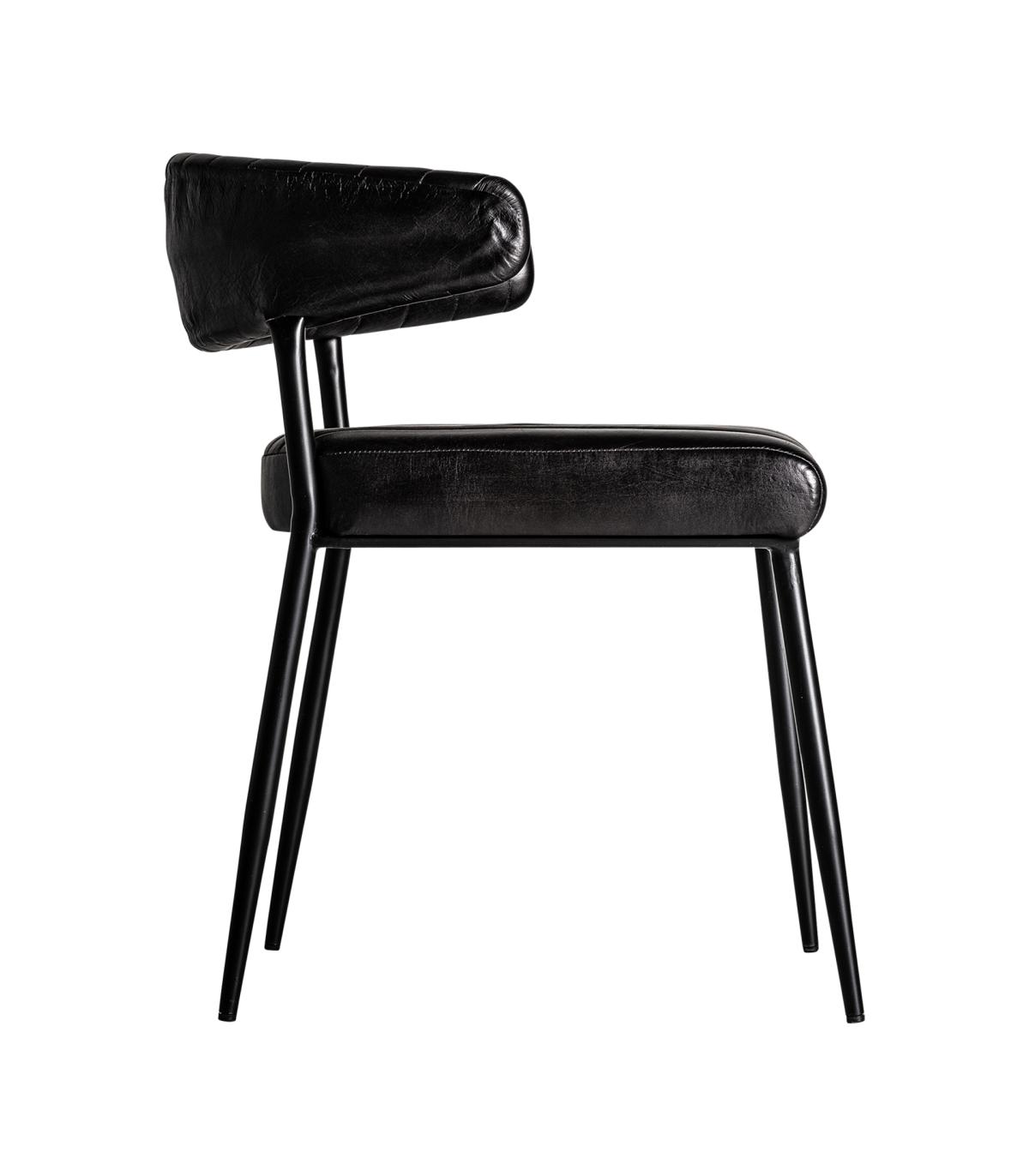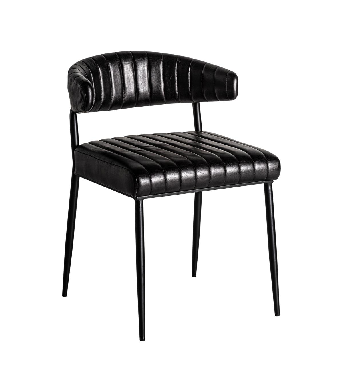 Silla jarpen de estilo vintage fabricado en piel en color negro combinado con hierro.