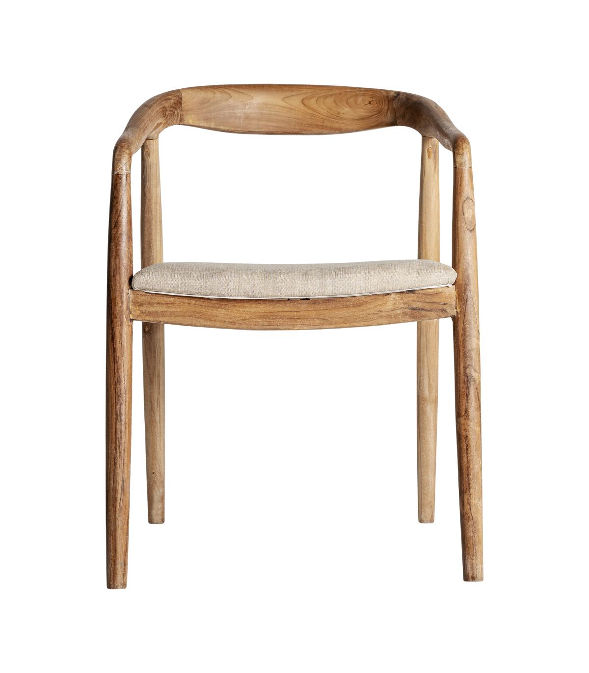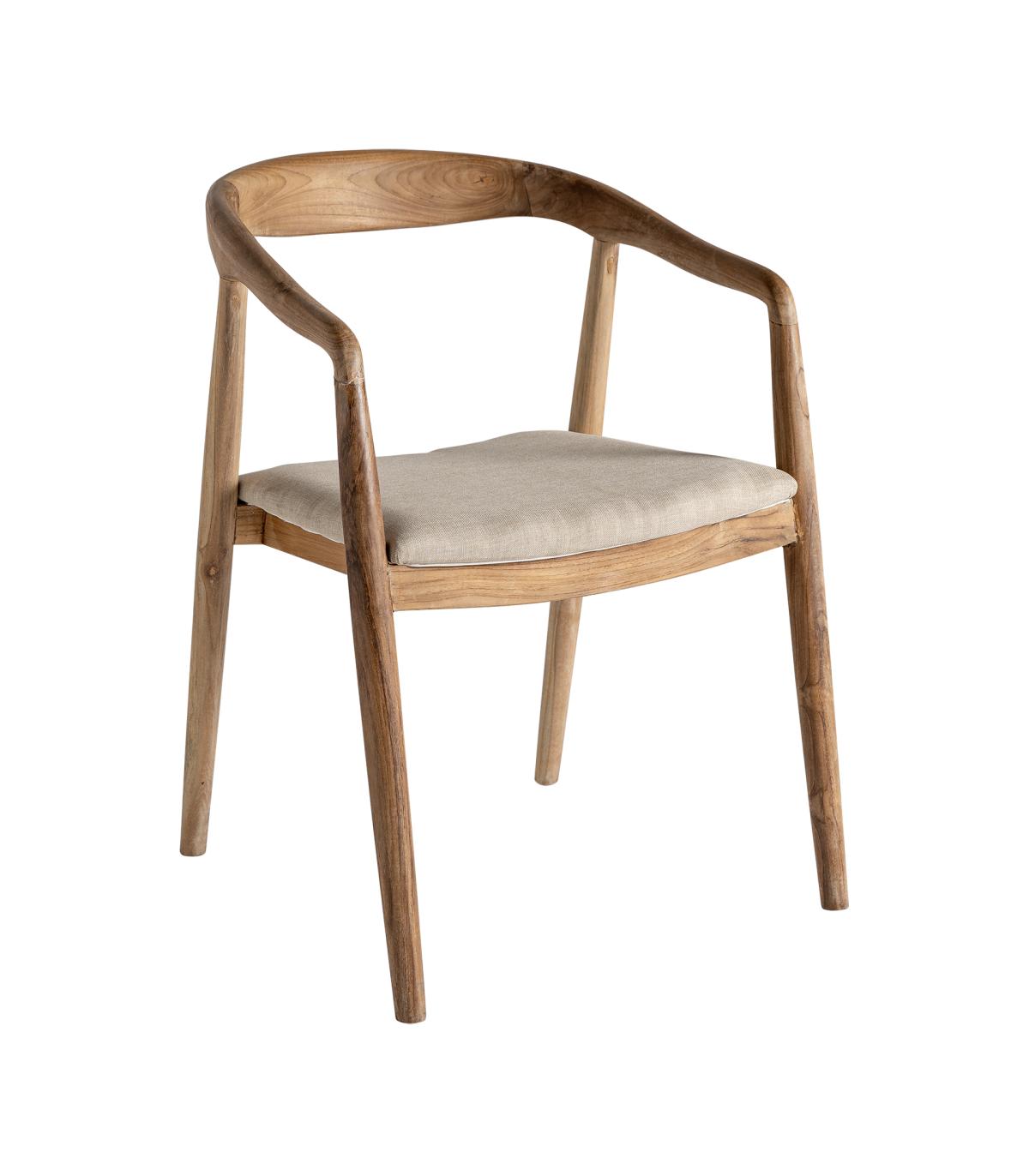 Silla malbun de estilo colonial fabricado en madera de teka en color marrón combinado con poliéster.