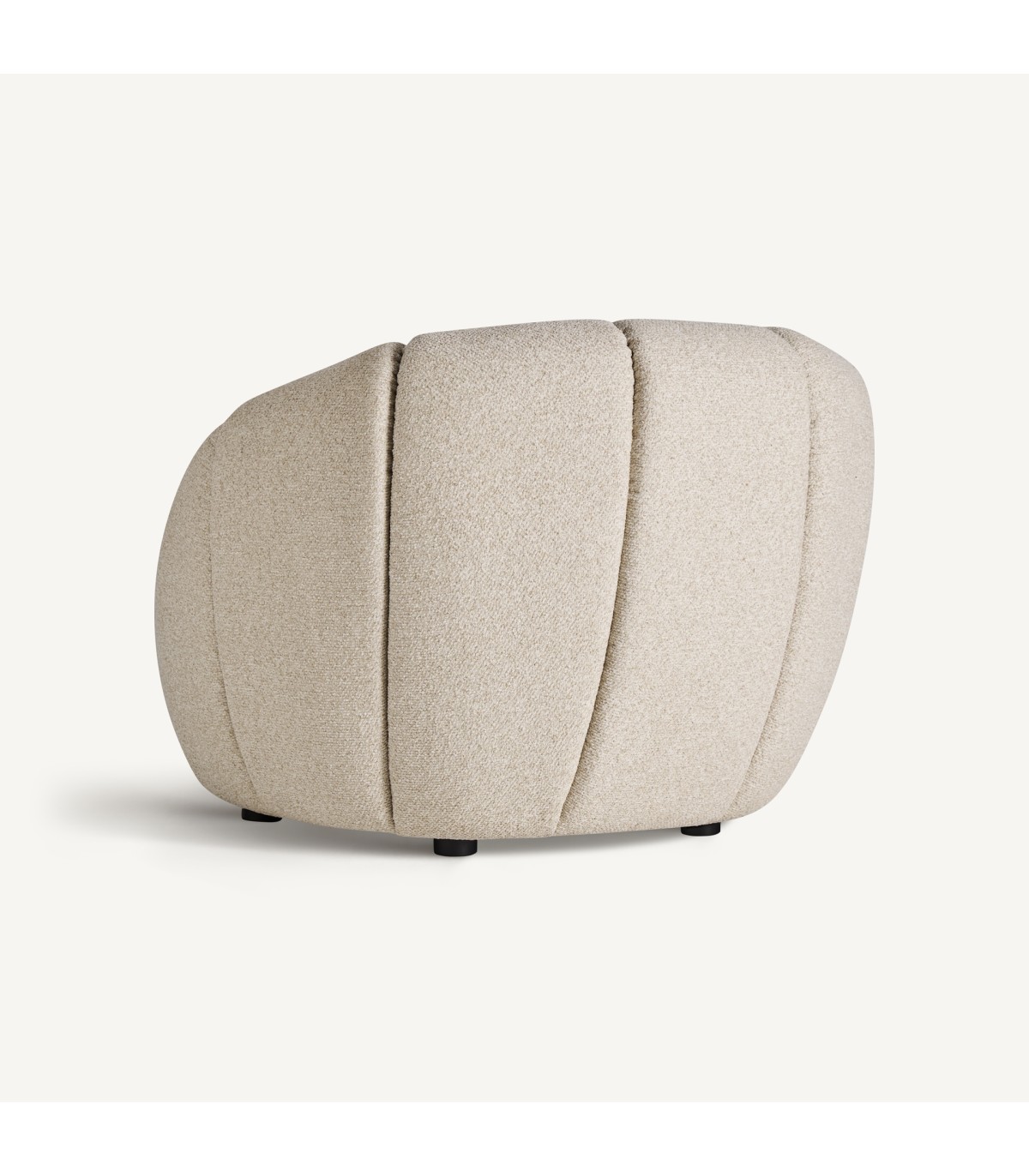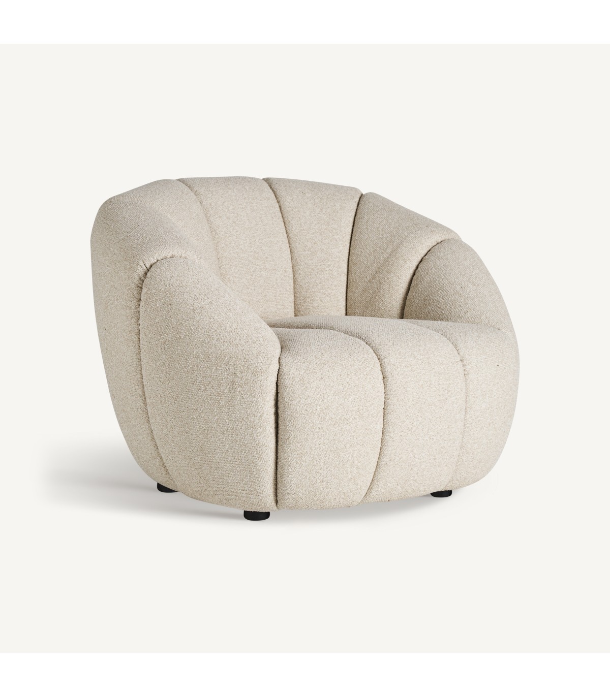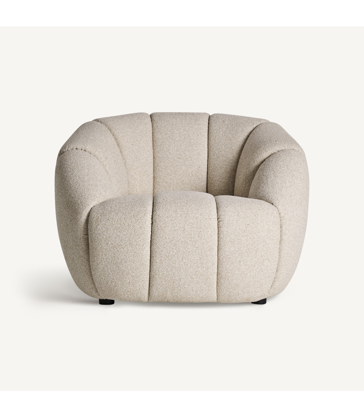 Sillón fabricado en poliéster en color beige combinado con espuma y madera.