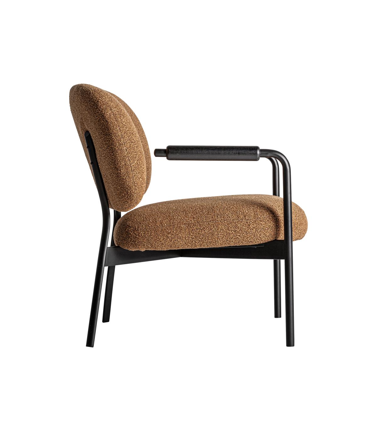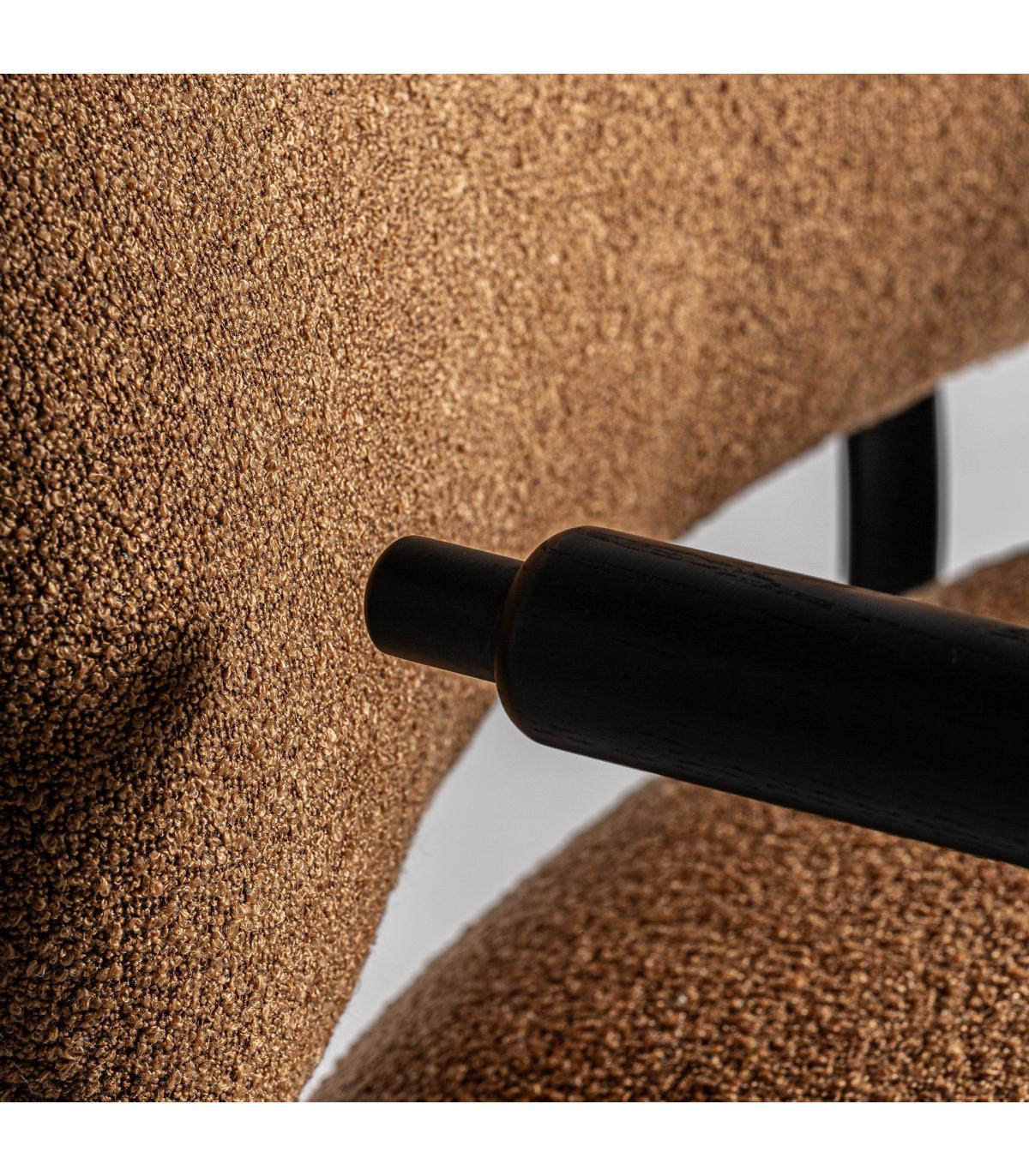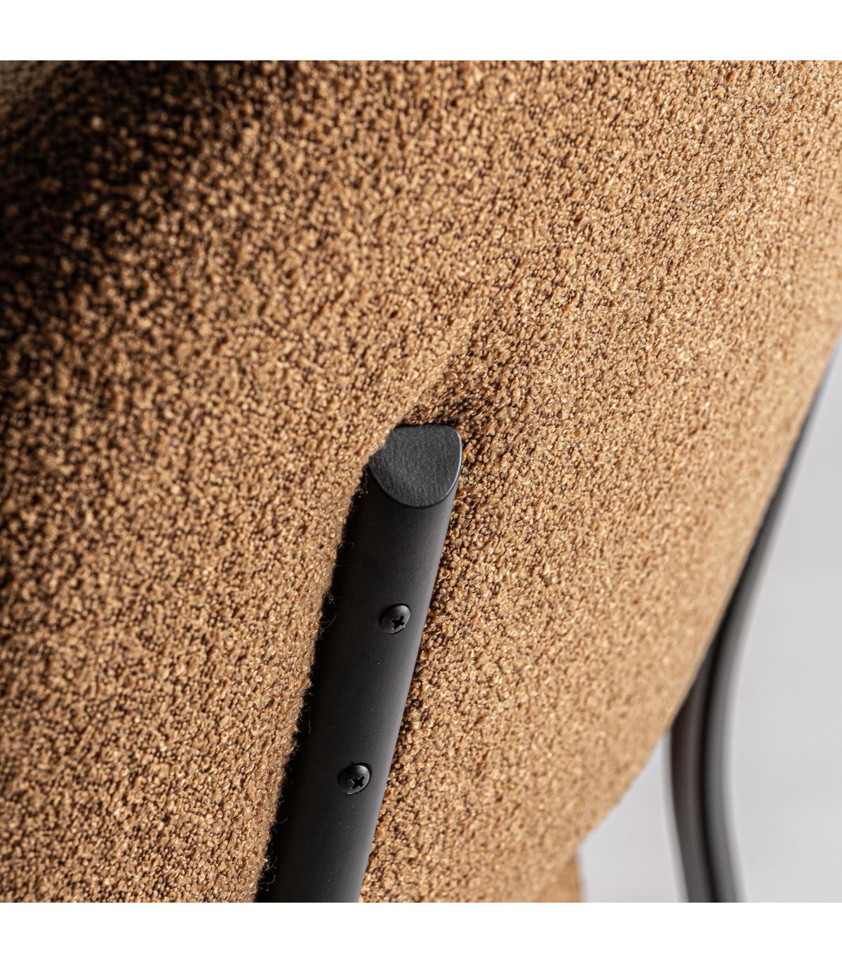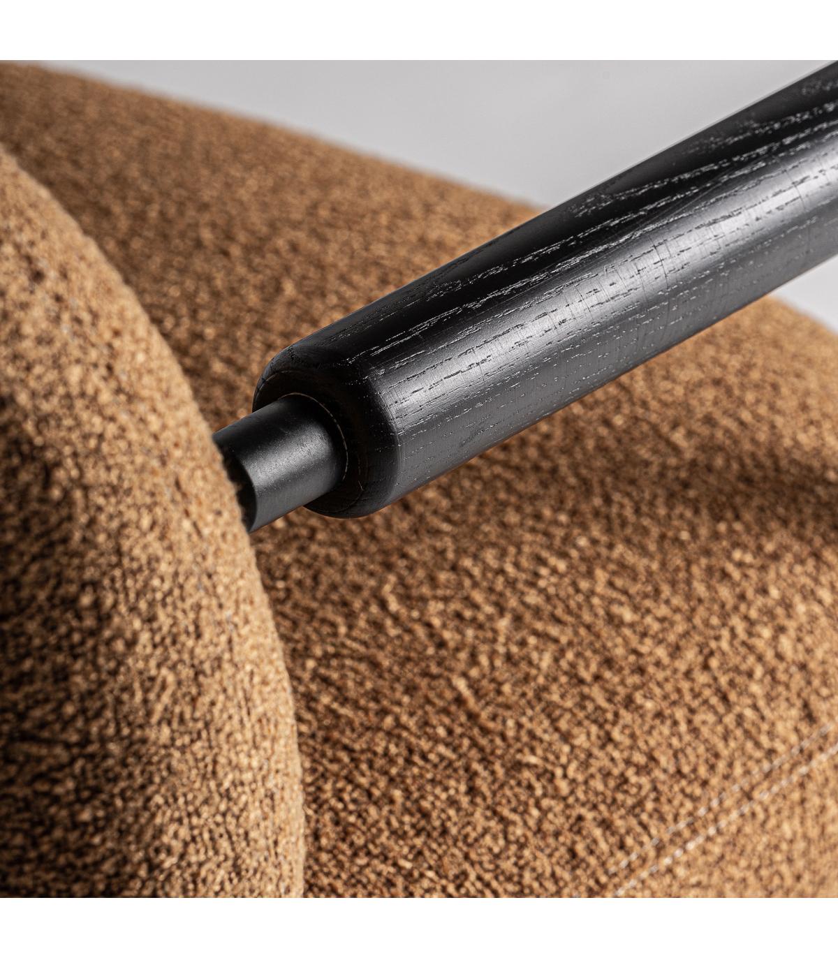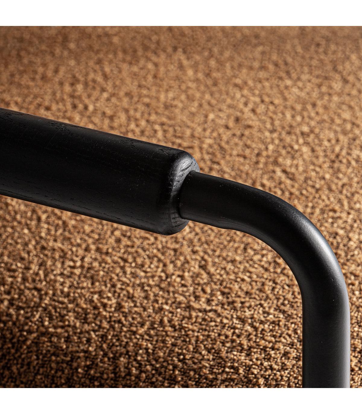 Silla jessie de estilo contemporáneo fabricado en madera de pino en color negro combinado con poliéster en color ocre con acabado jaspeado y metal en color negro.