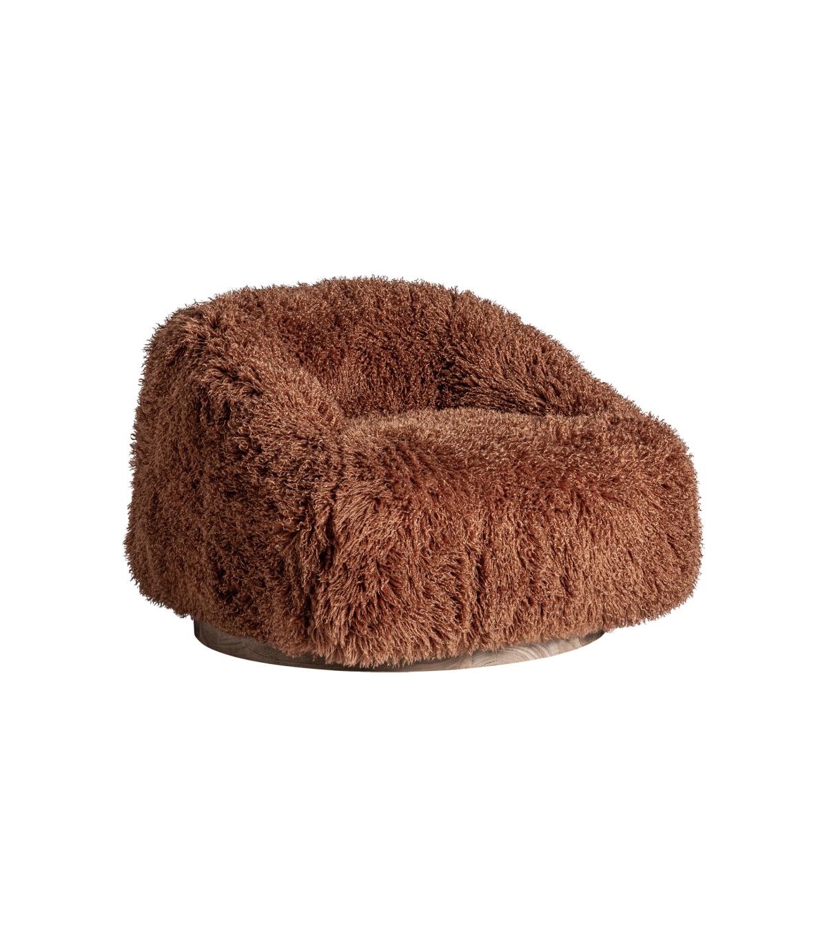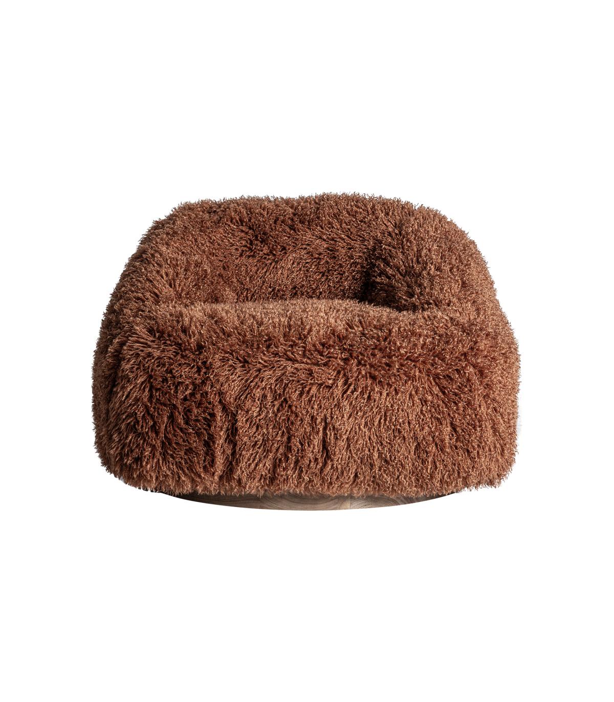 Sillón pavia de estilo contemporáneo fabricado en poliéster en color marrón combinado con madera de pino en color marrón.